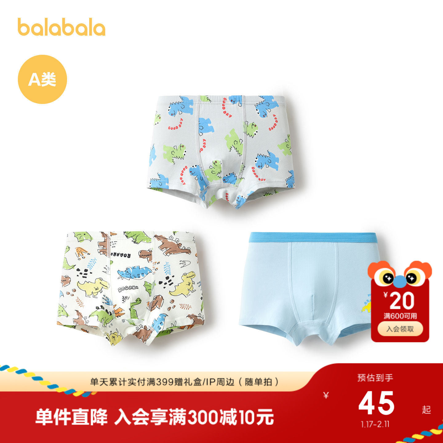 【balaOne】巴拉巴拉儿童内裤棉男童不夹pp抗菌裆四角短裤三条装