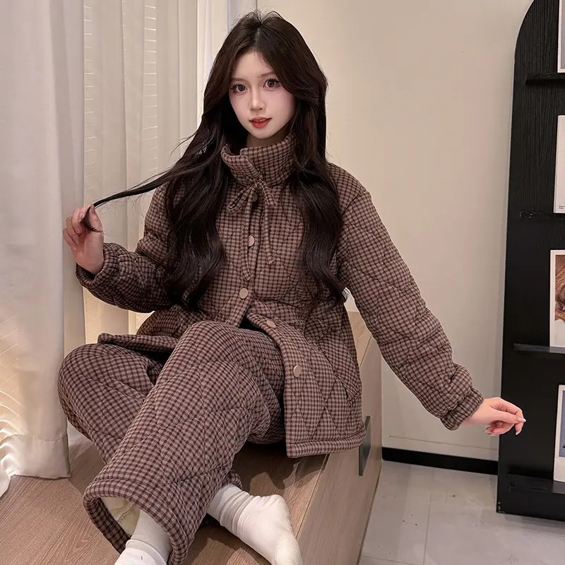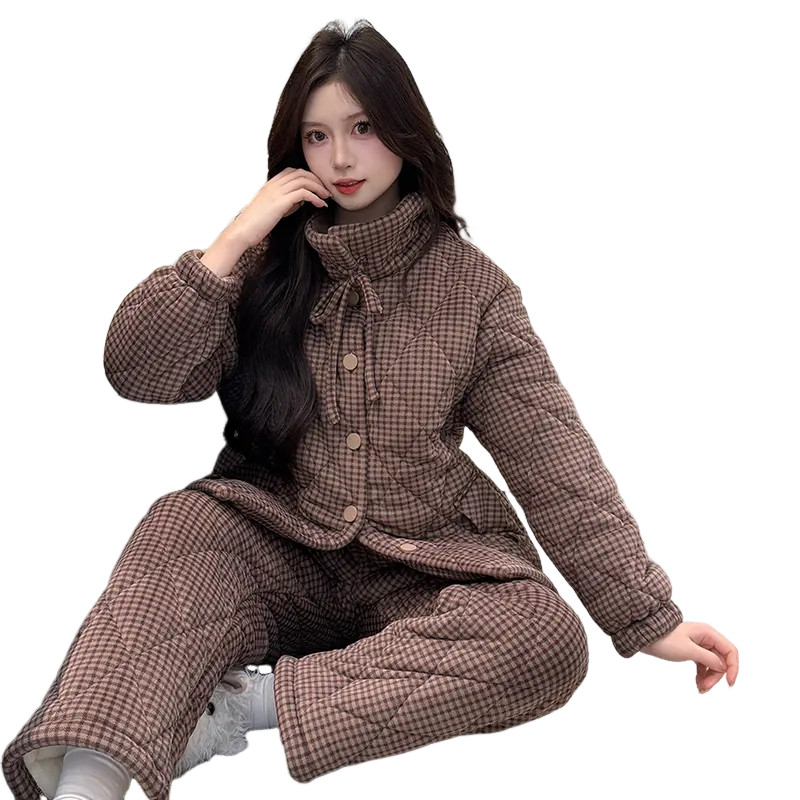 珊瑚绒睡衣女款秋冬季三层夹棉加厚韩版女士大码宽松家居服两件套