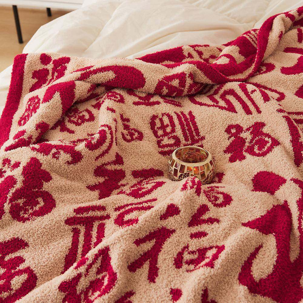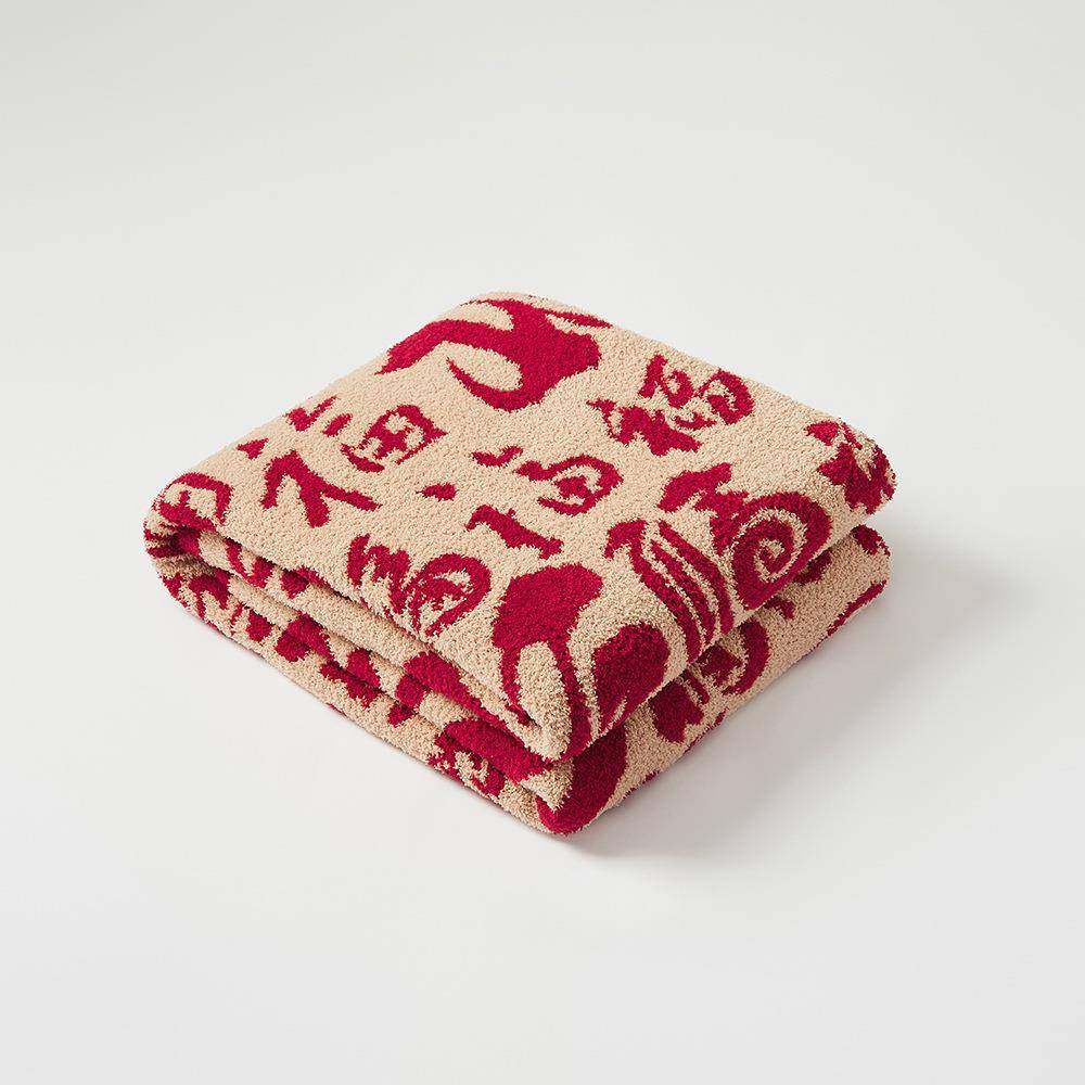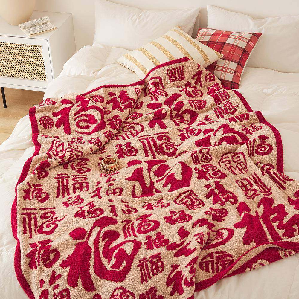 新款百福如意毯半边绒针织毛线盖毯 办公午休毯 拍照道具家具软装