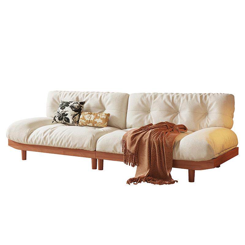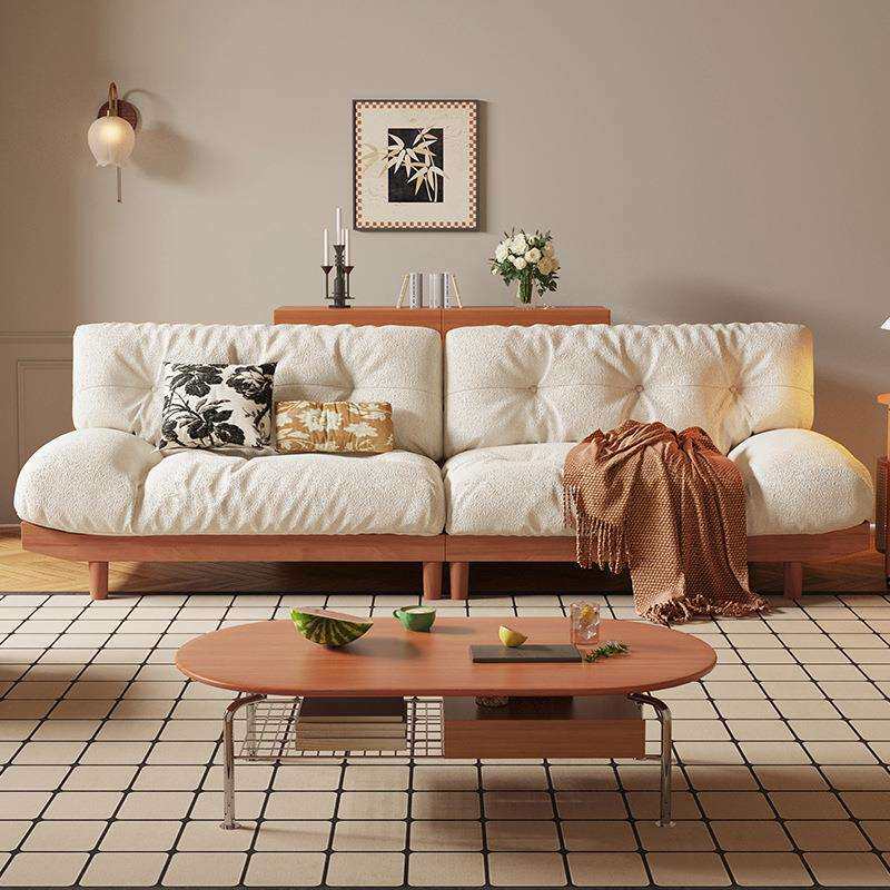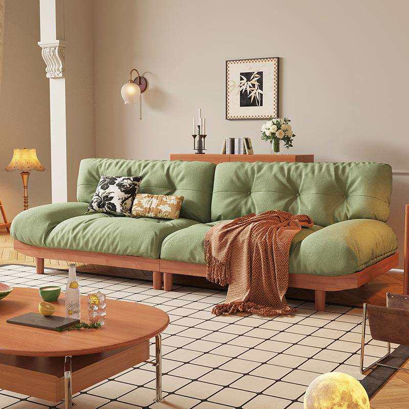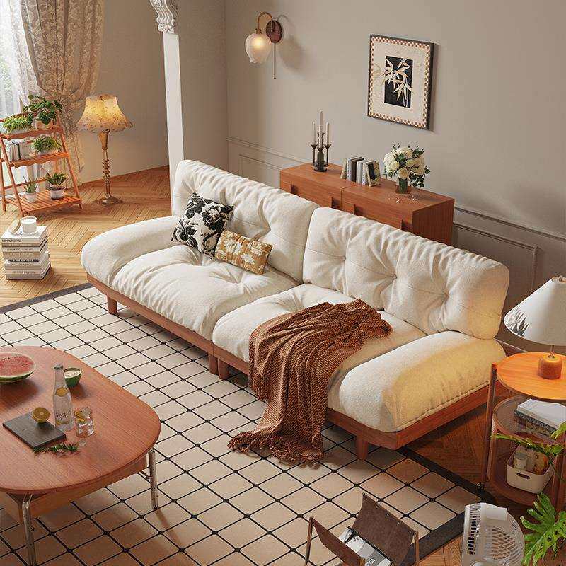 法式中古风云朵沙发三人位直排实木布艺沙发小户型客厅简约奶油风