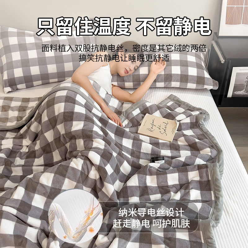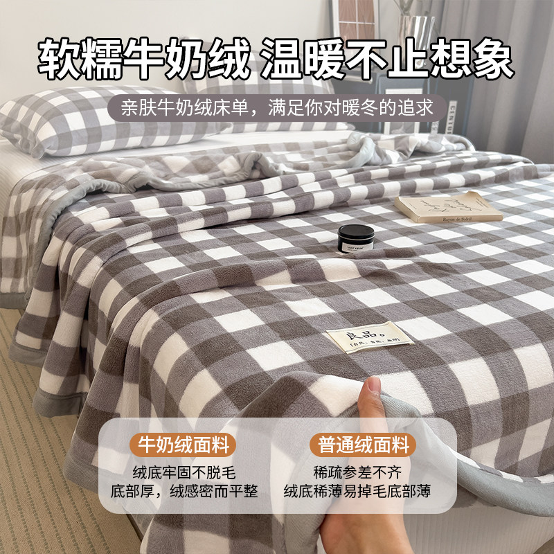 无印良品牛奶绒床单单件秋冬季加厚珊瑚绒加绒保暖被单三件套单人