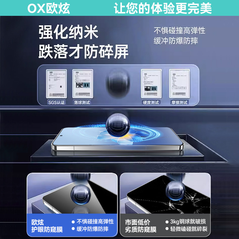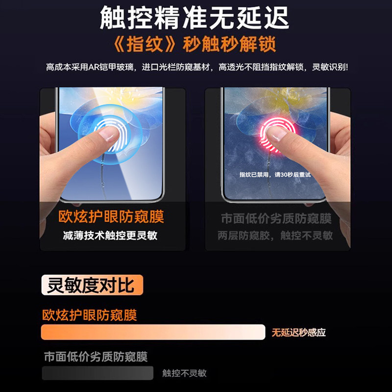 【无纹康宁玻璃★超原屏手感★360°防窥】
