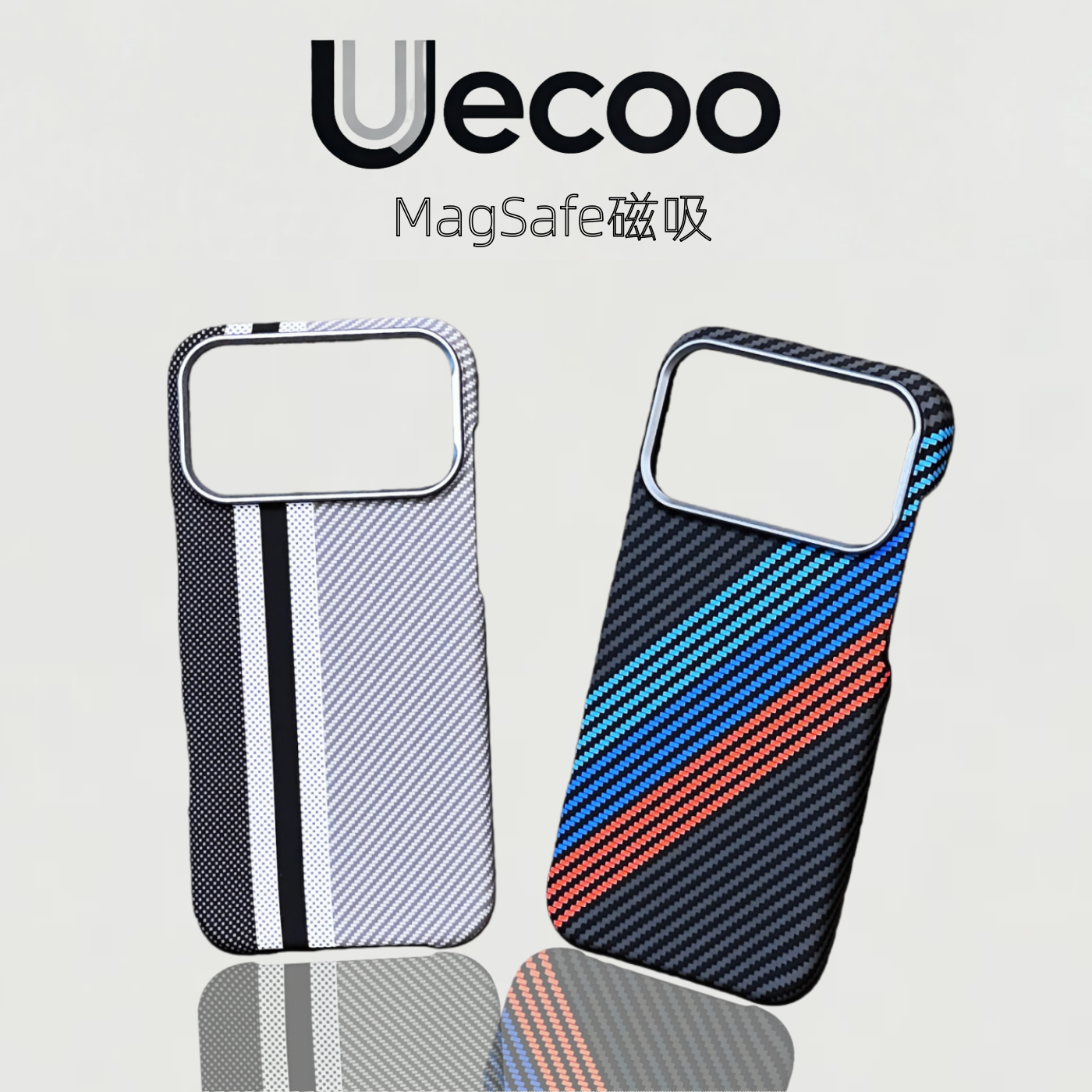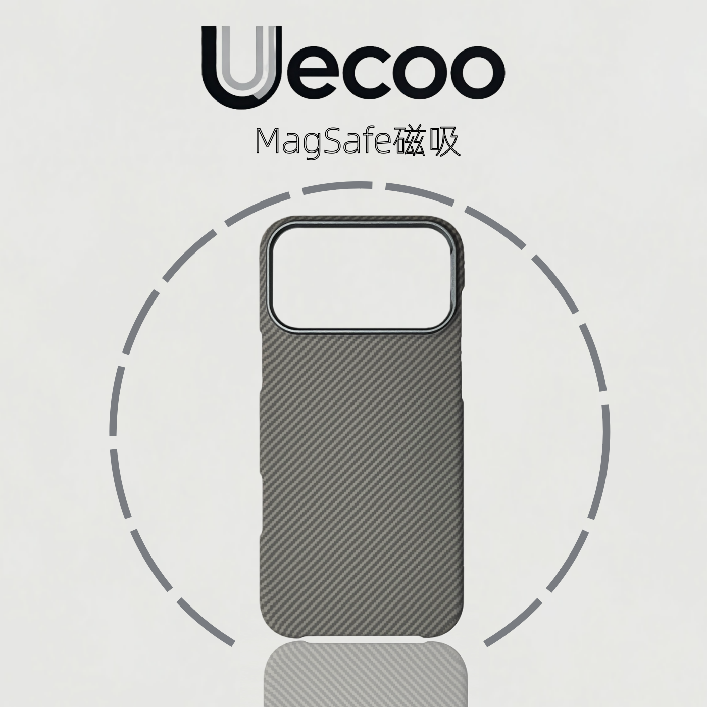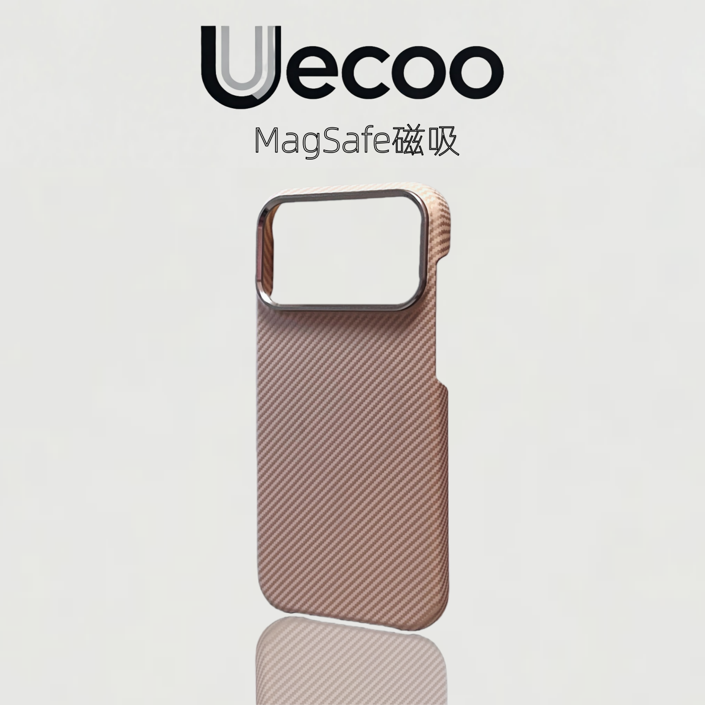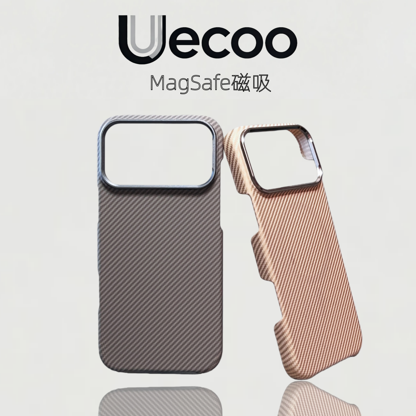 【Uecoo原创家】凯夫拉纹碳纤维纹适用于iPhone17promax手机壳灰色苹果17保护套16超薄磨砂磁吸半包金属镜框