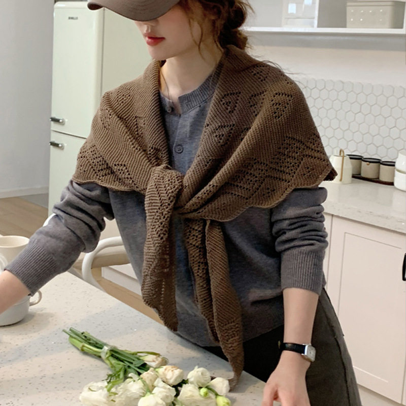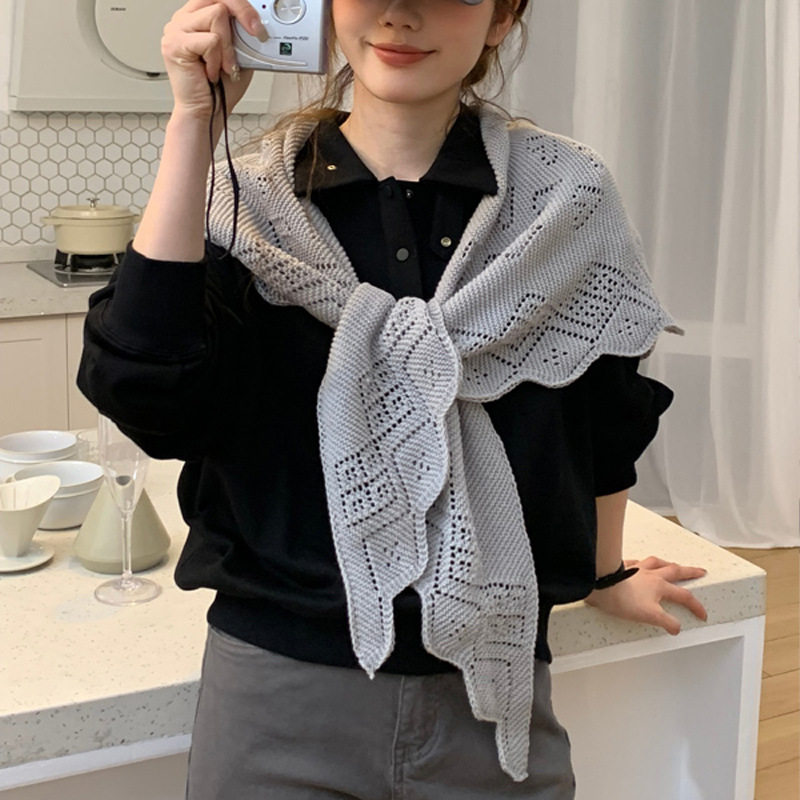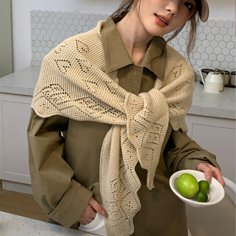 高品质镂空针织外搭女士韩版百搭薄款装饰披风洋气三角巾坎肩