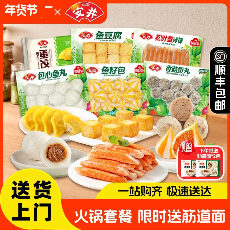 安井鱼豆腐鱼丸火锅食材鱼籽包蟹味棒蛋饺香菇贡丸6件套丸子套餐