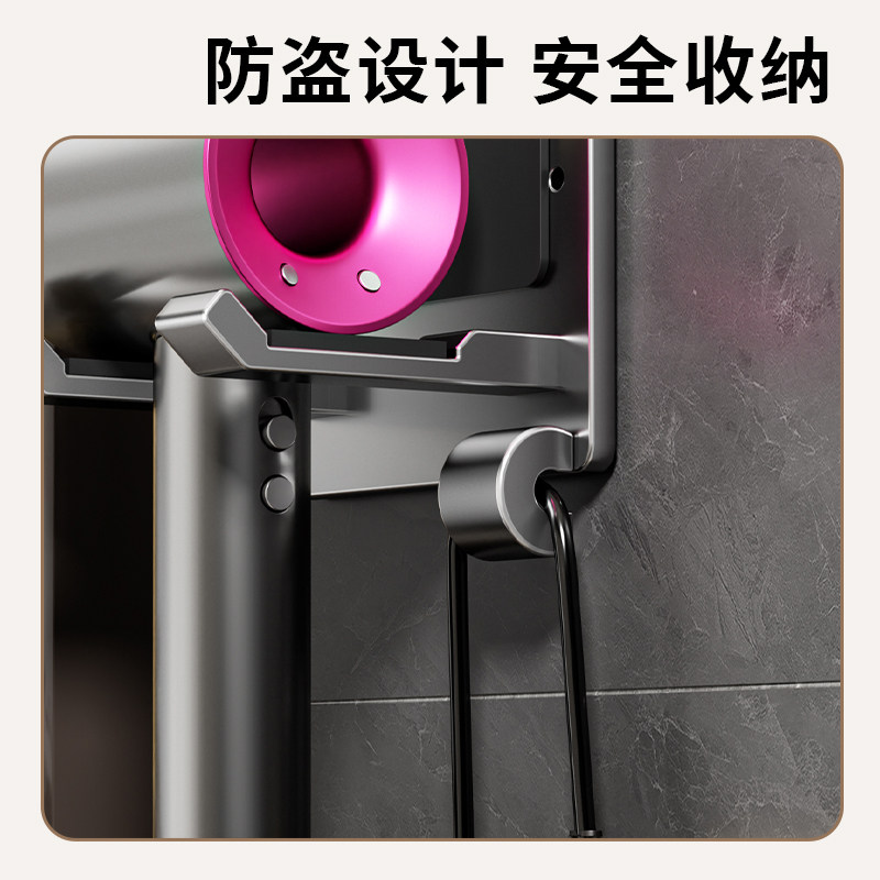 吸盘吹风机置物架太空铝免打孔卫生间适用戴森电吹风筒支架挂架子