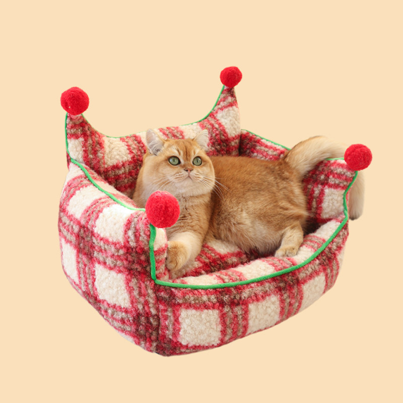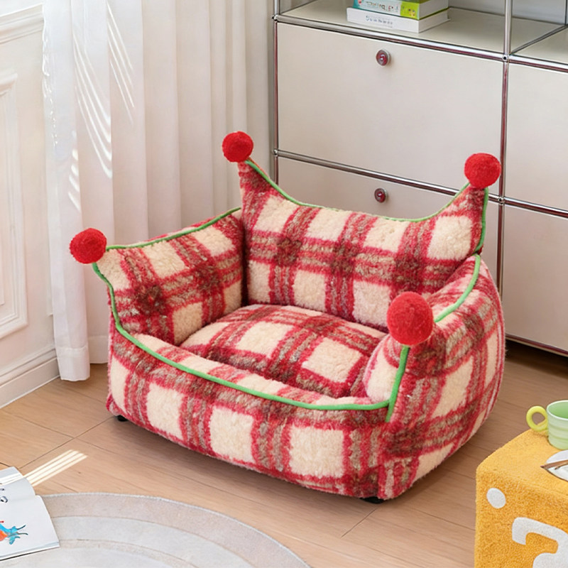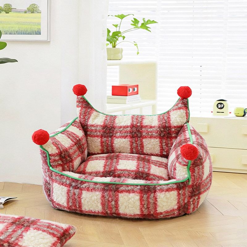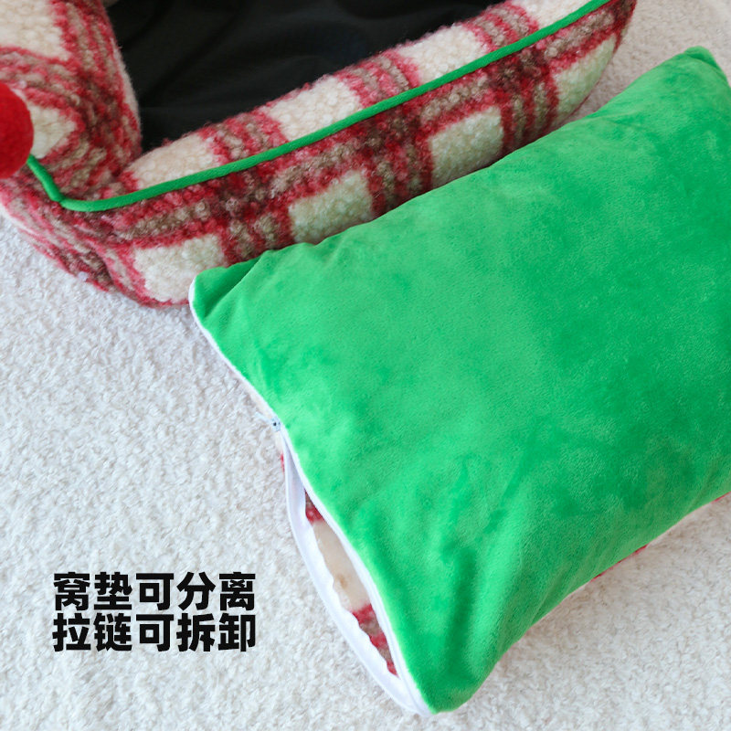 冬季猫窝狗窝格纹宠物沙发猫窝加厚保暖绒毛可拆猫狗通用窝床垫子
