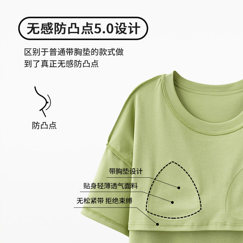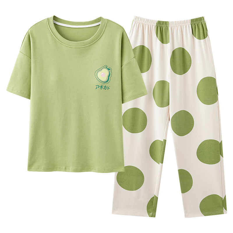 浪莎自带胸垫睡衣女夏季纯棉短袖长裤大码宽松全棉夏天家居服套装