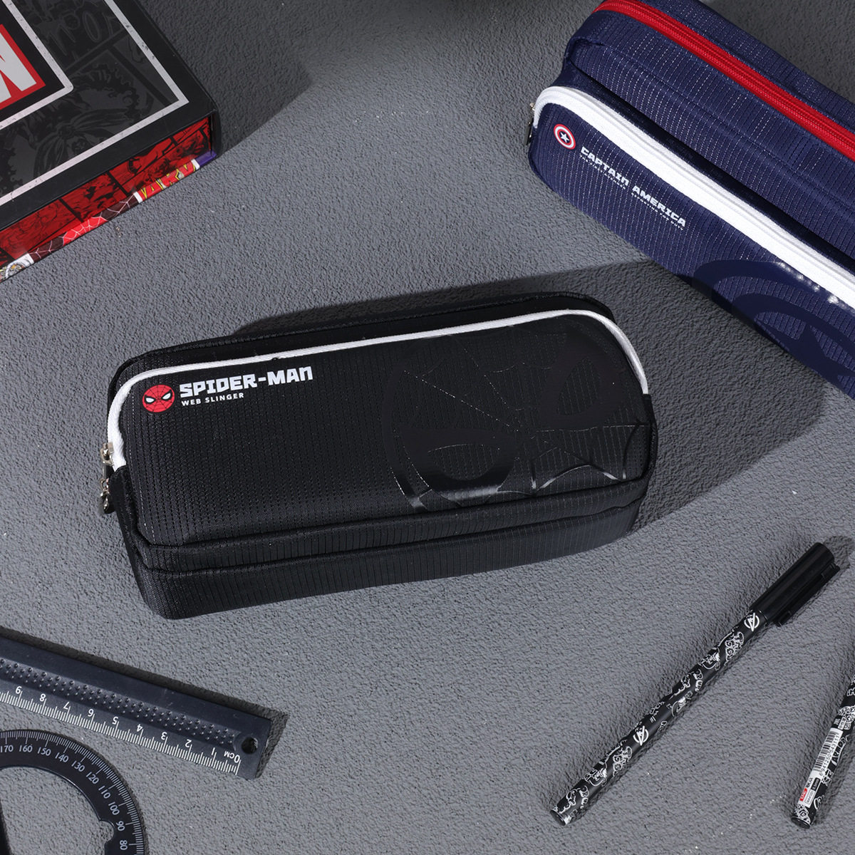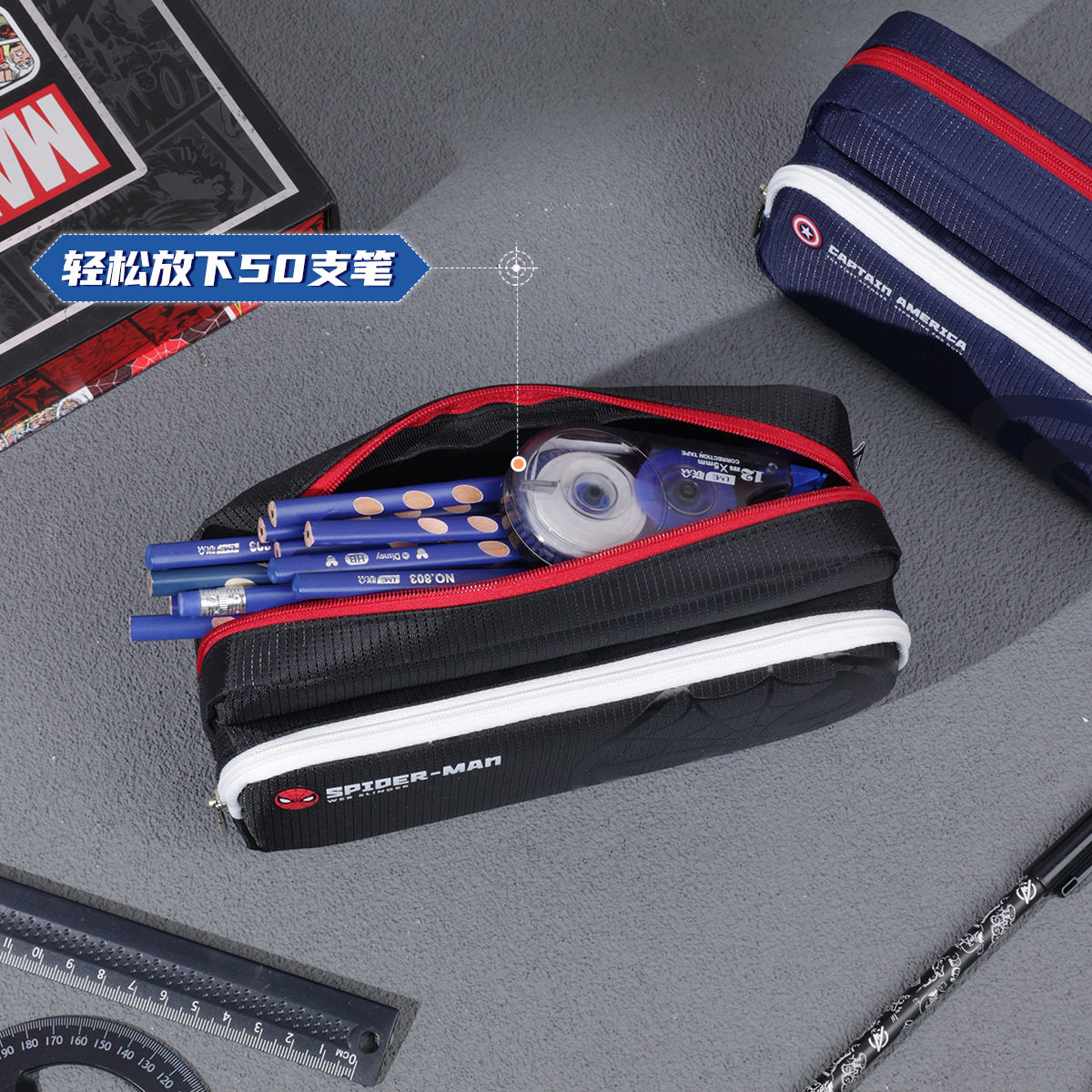 正版漫威蜘蛛侠美国队长双层笔袋文具盒男孩2024新款大容量简约风学生初中高中男生用铅笔盒高颜值儿童文具袋