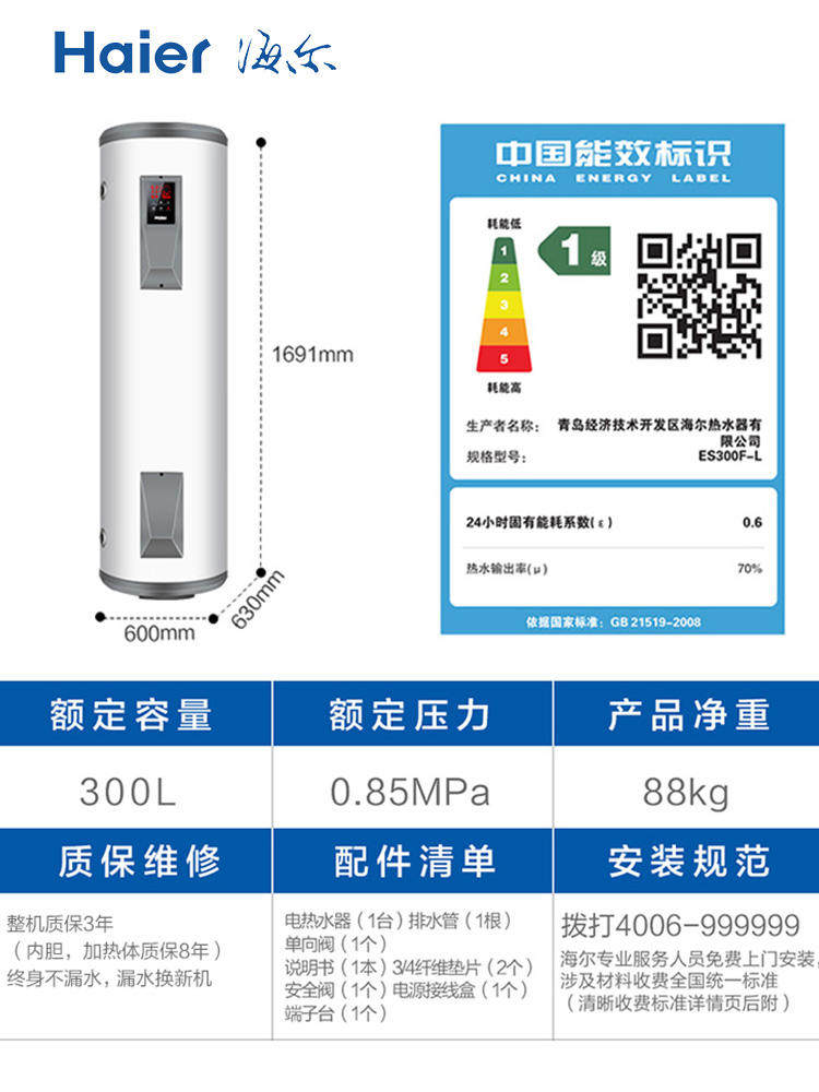 海尔电热水器300升L竖立式落地商用理发店大容量储水式家用酒店