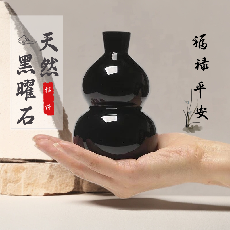 天然黑曜石葫芦摆件玉石客厅家居玄关装饰品摆设开业乔迁新居礼品
