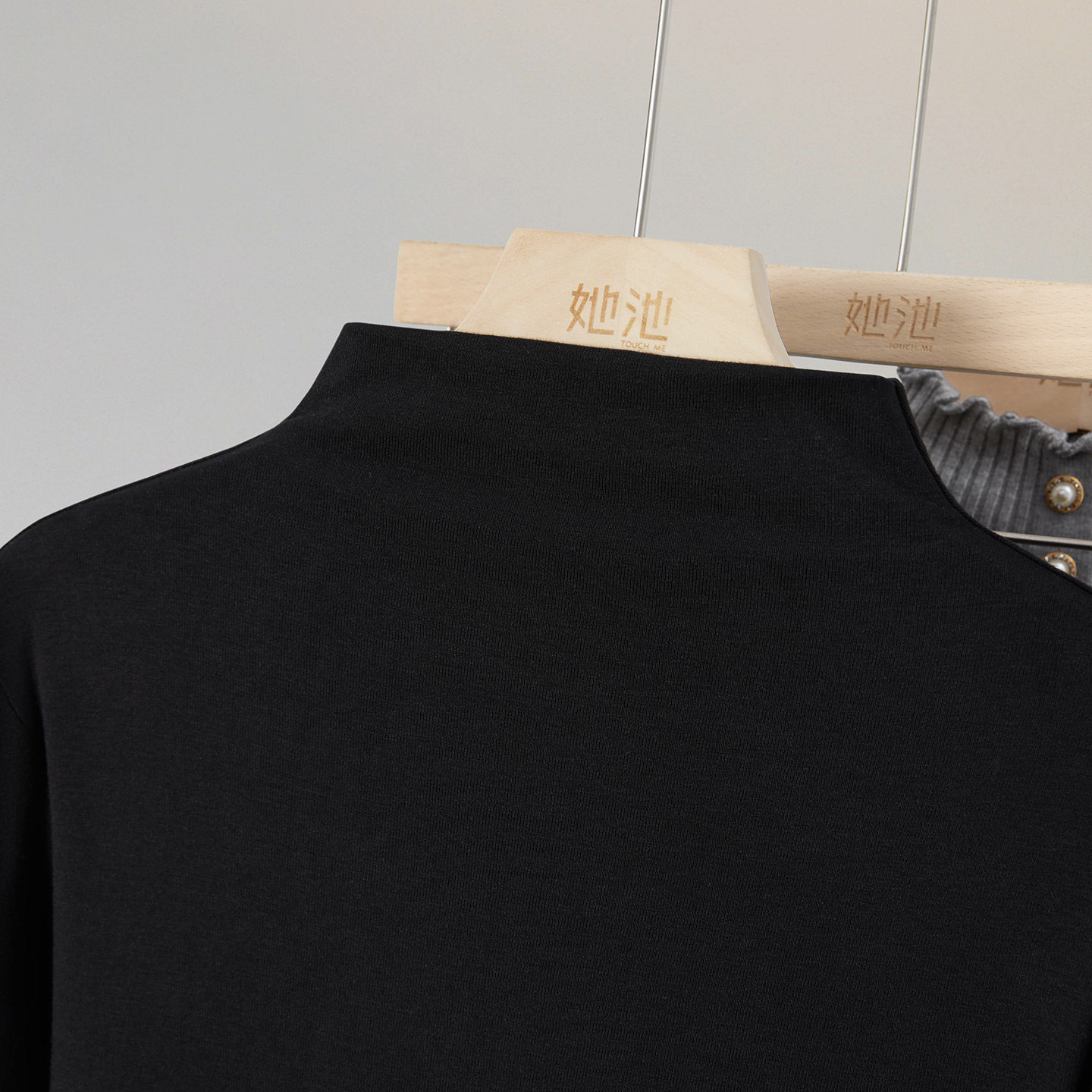 widelia十三行老板娘冬正肩小立领半高领打底衫弹力长袖T恤女9585