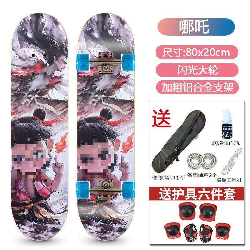 儿童哪吒滑板四轮儿童初学者--岁专业板双翘哪咤滑板车青少年