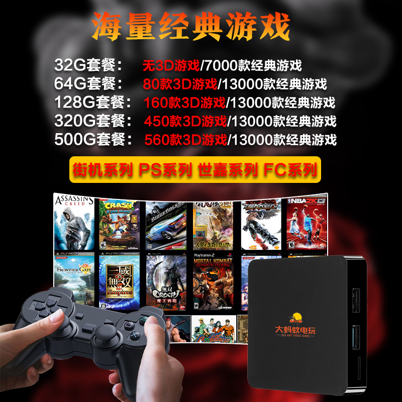 大蚂蚁3D双系统连接电视家用游戏机怀旧老式街机红白机插黄卡