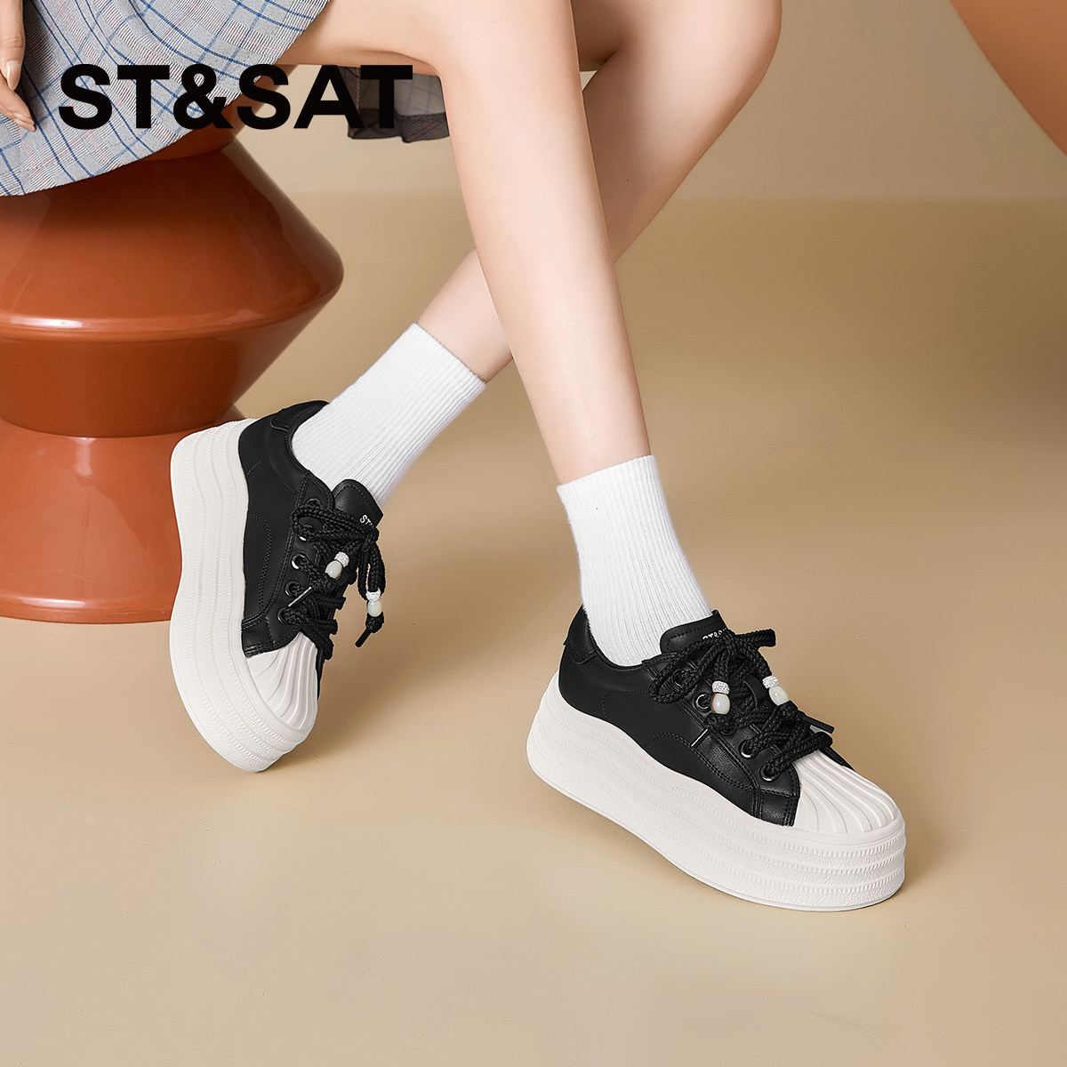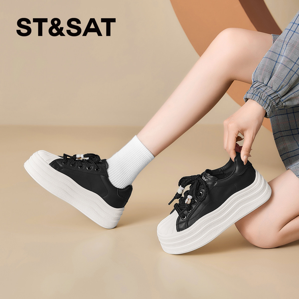 星期六爆款百搭运动休闲板鞋2025春秋新款贝壳头松糕厚底小白鞋子