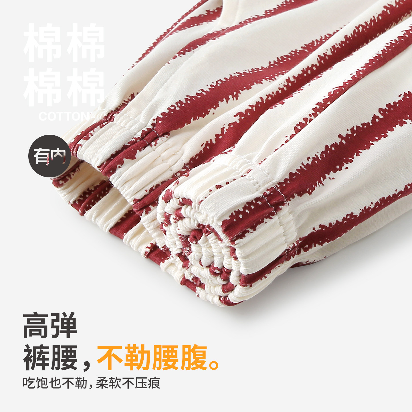 有内纯棉睡衣女款女士长袖抗菌A类条纹红家居服春季长裤新款套装