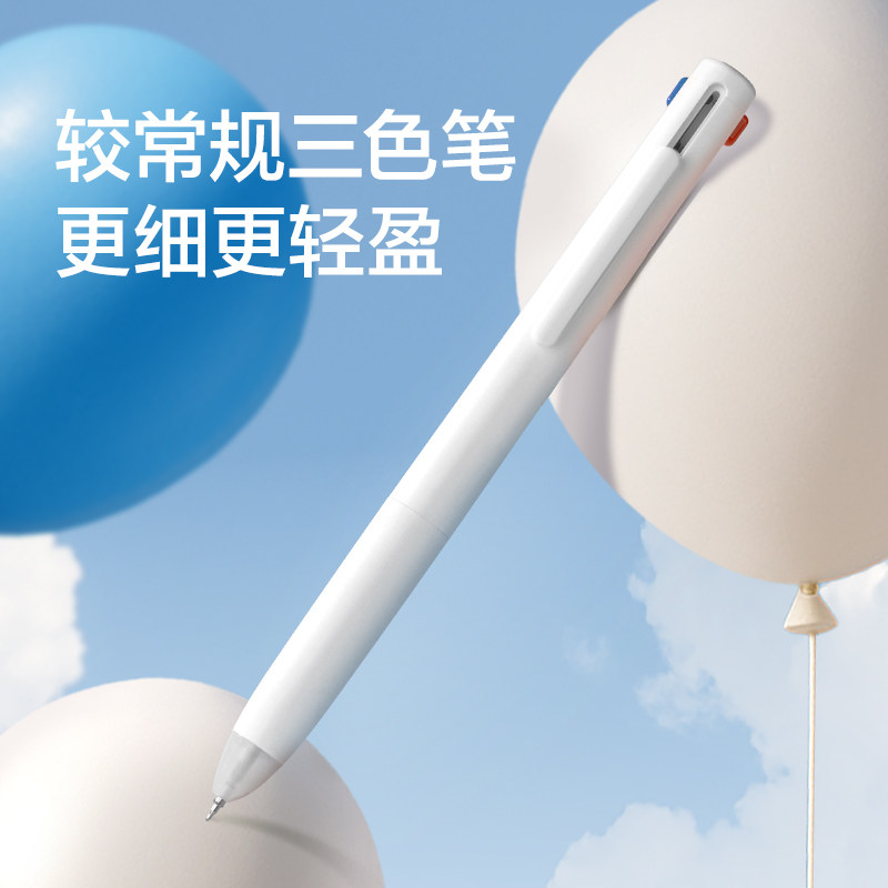 得力纽赛三色笔中性笔黑红蓝三色合一学生文具做笔记用多色按动式水笔高颜值错题分类用笔红色学生专用