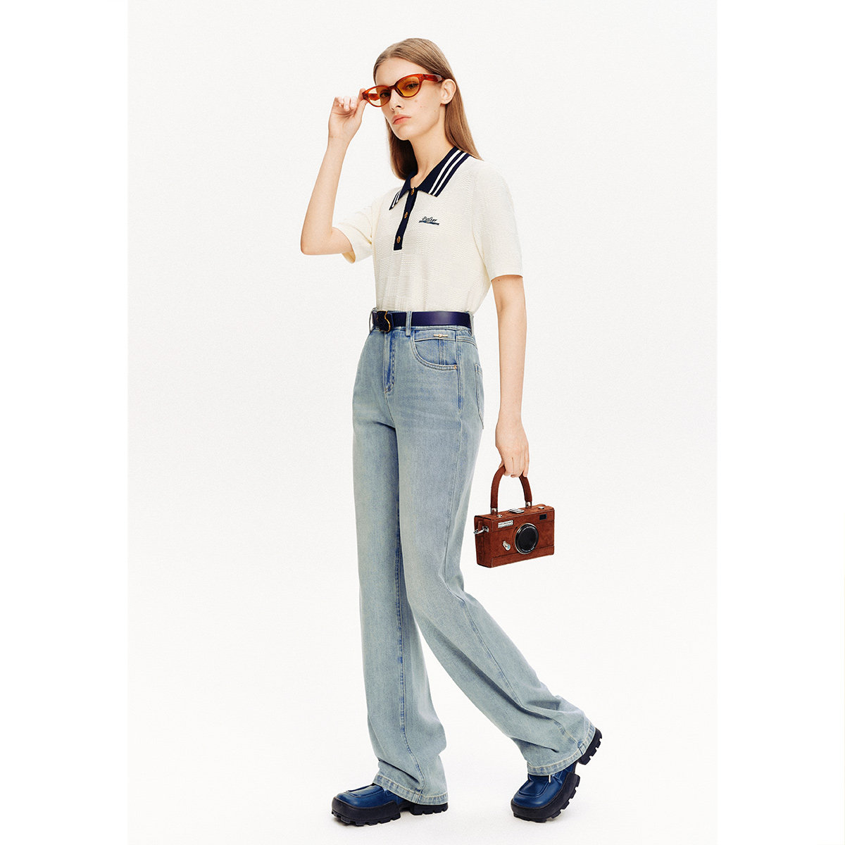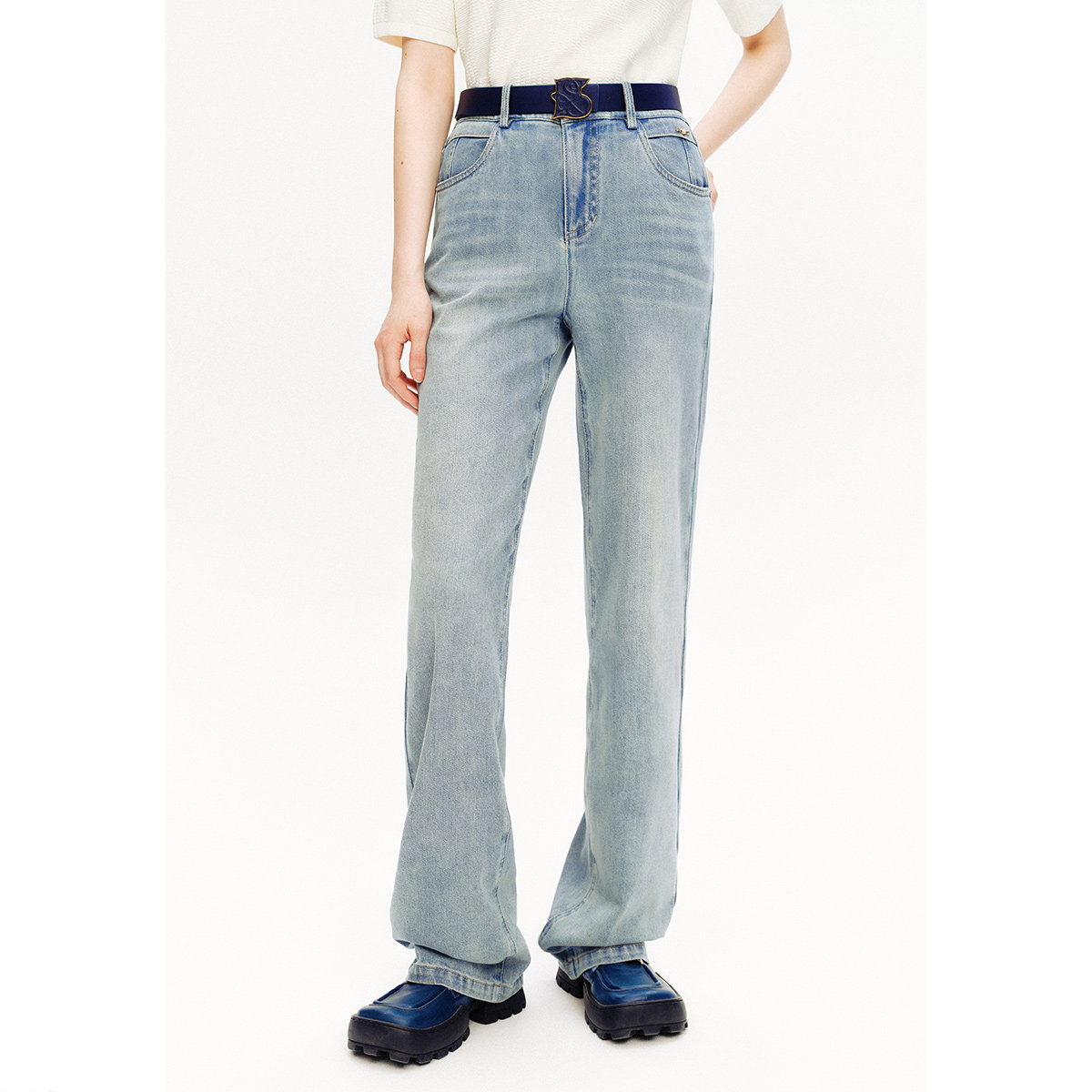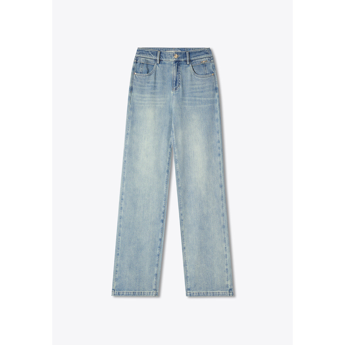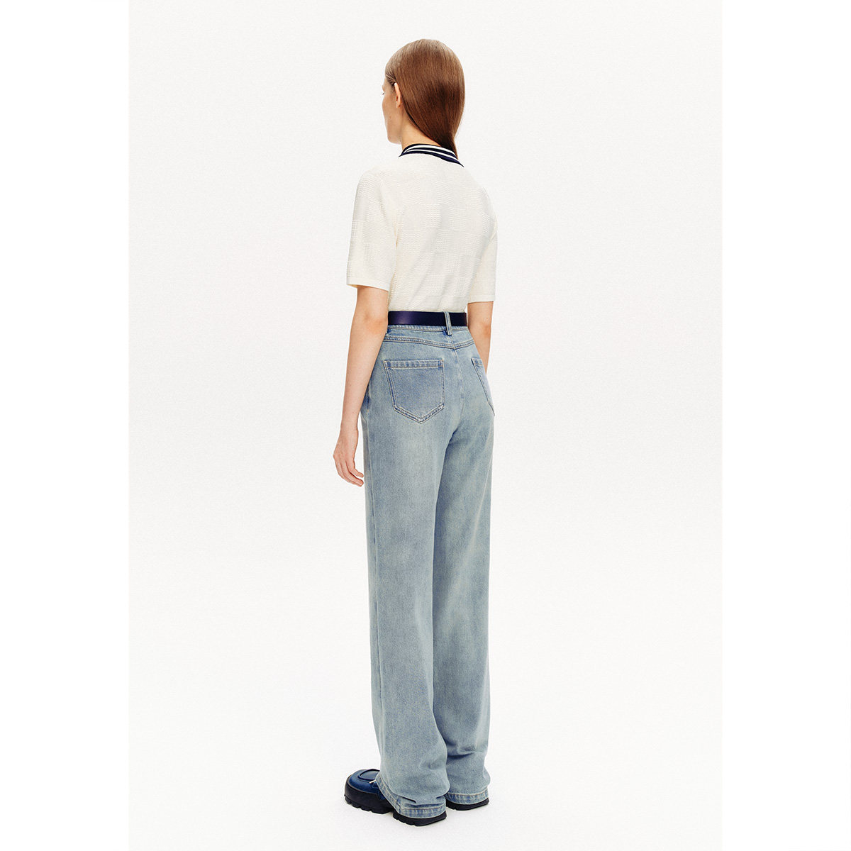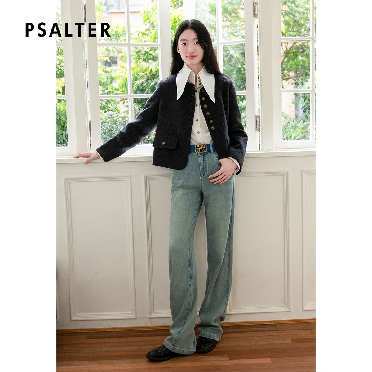 诗篇专选复古洗水浅蓝简约松弛阔腿直筒裤牛仔裤秋款