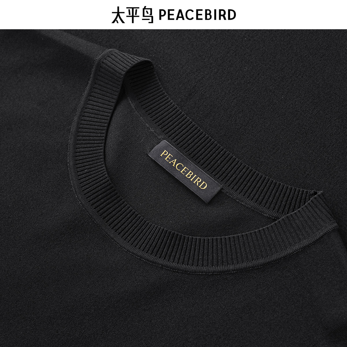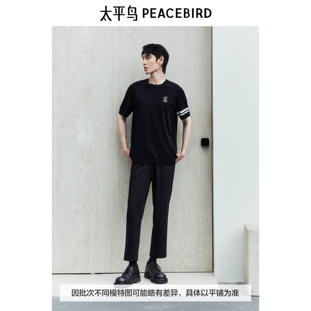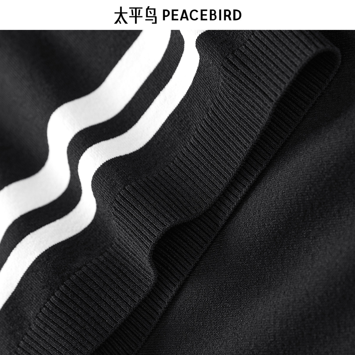太平鸟男装 短袖t恤男潮流黑色撞色条纹拼接百搭青休闲体恤男