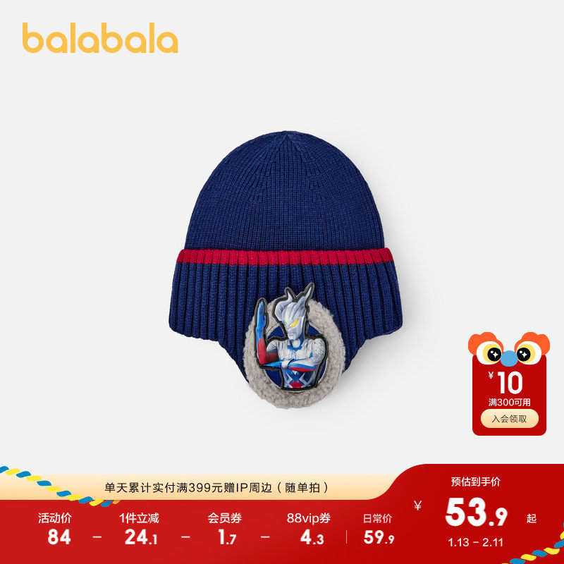 【奥特曼联名】巴拉巴拉儿童帽子男童保暖冬季新款毛线帽舒适时尚