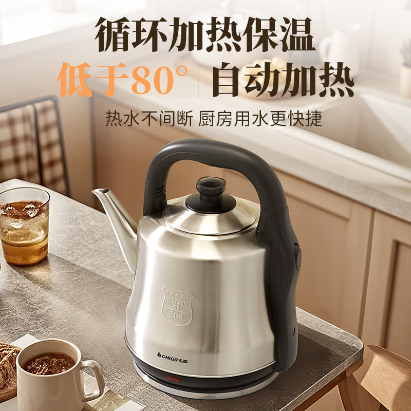 志高电热家用烧水壶304不锈钢6L大容量商用电热开水壶泡茶热水壶
