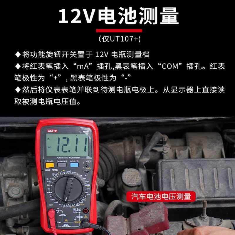 优利德UT107+汽车万用表高精度全自动UT105+汽修电工汽车维修专用