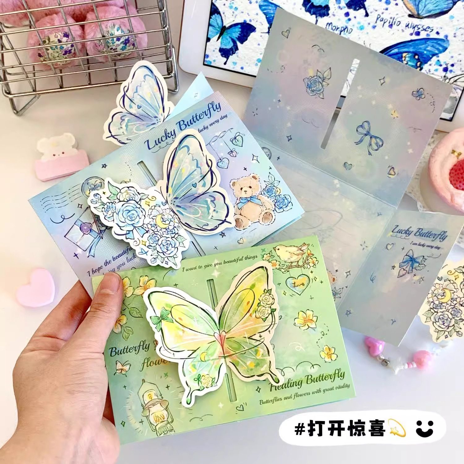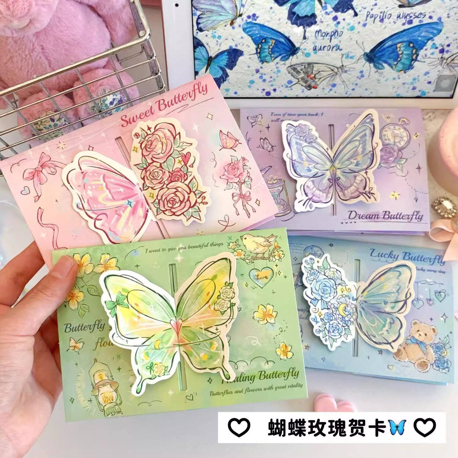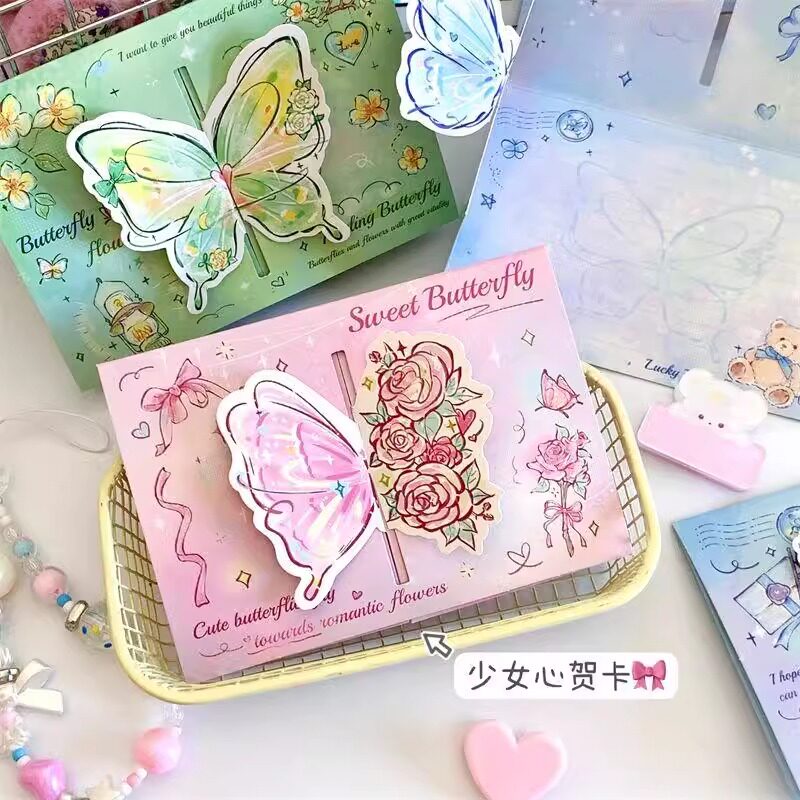 玫瑰蝴蝶立体贺卡节日卡通祝福卡片折叠异形留言明信片少女卡片