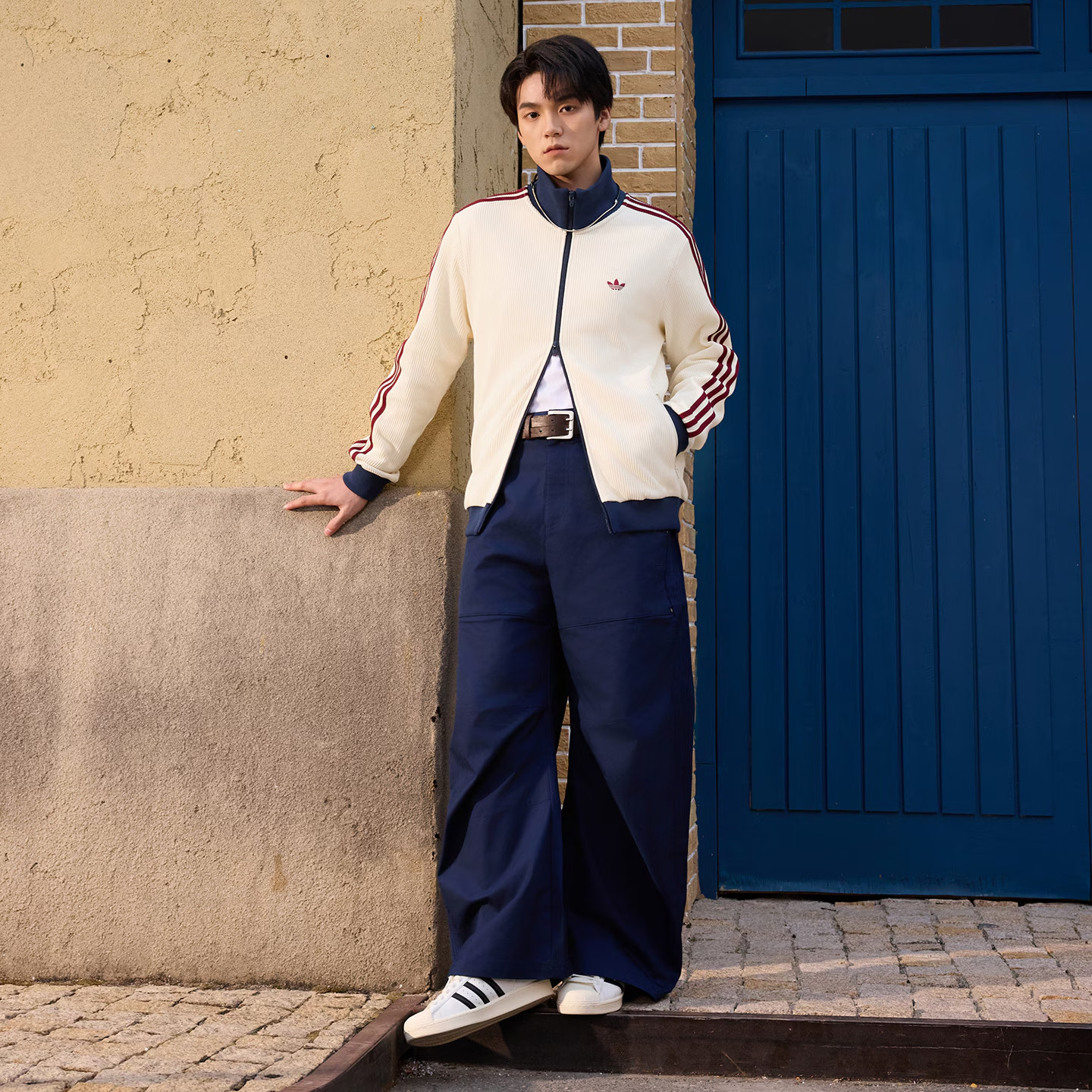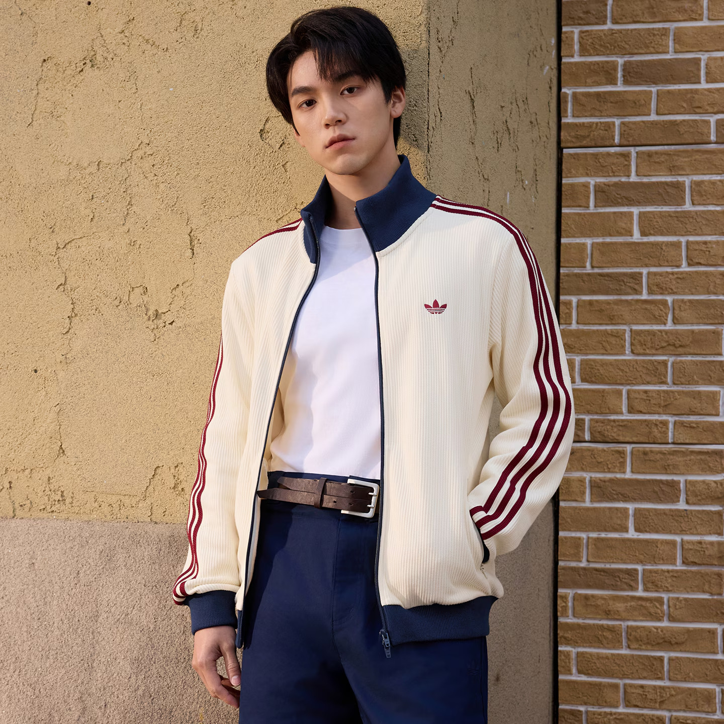 adidas阿迪达斯三叶草华夫格漏斗领夹克2026春男针织外套 KY5769