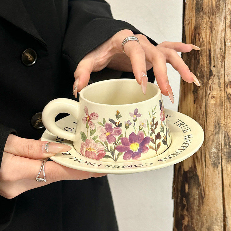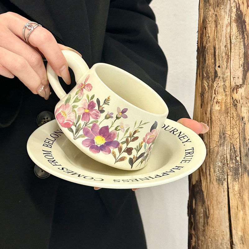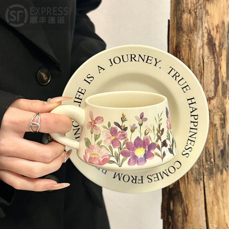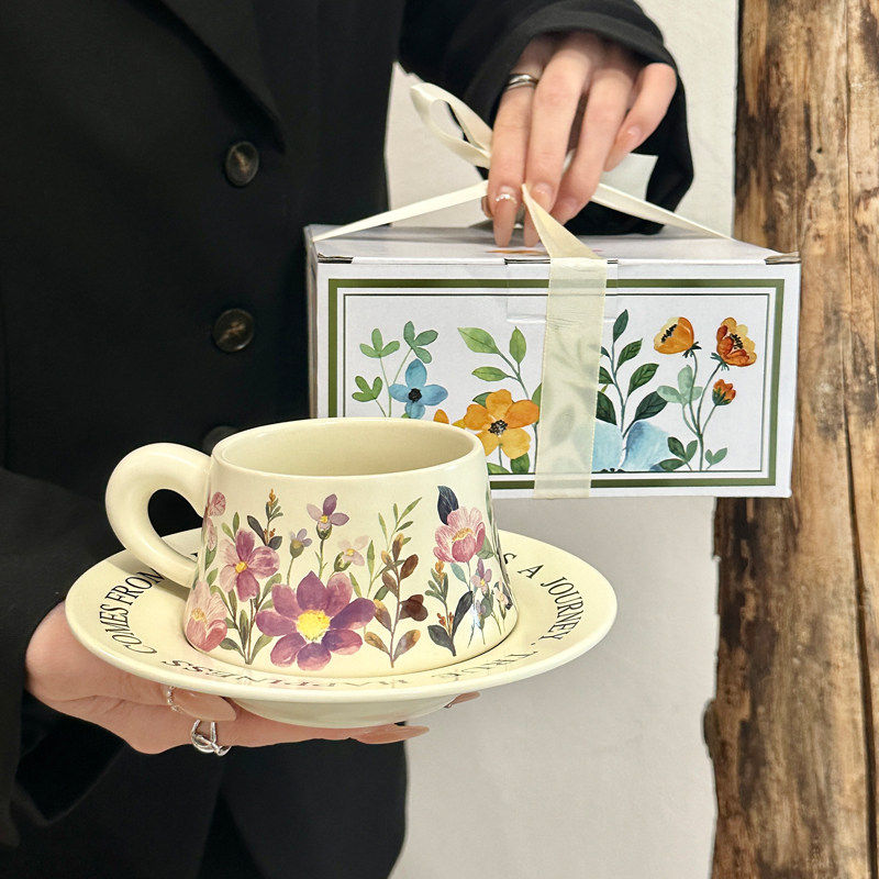 复古原创设计蝴蝶兰咖啡杯碟套装下午茶陶瓷马克杯女生伴手礼礼品