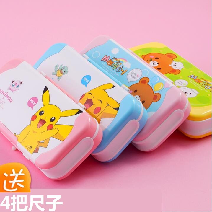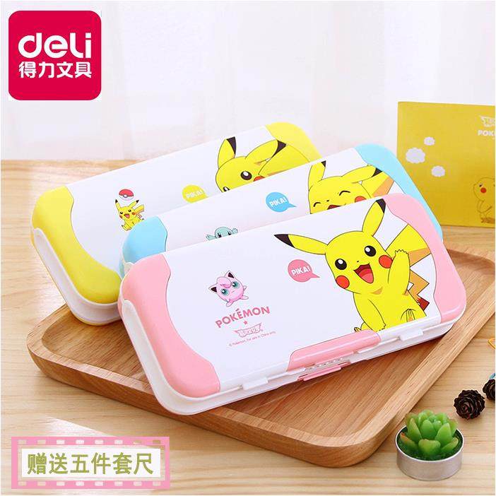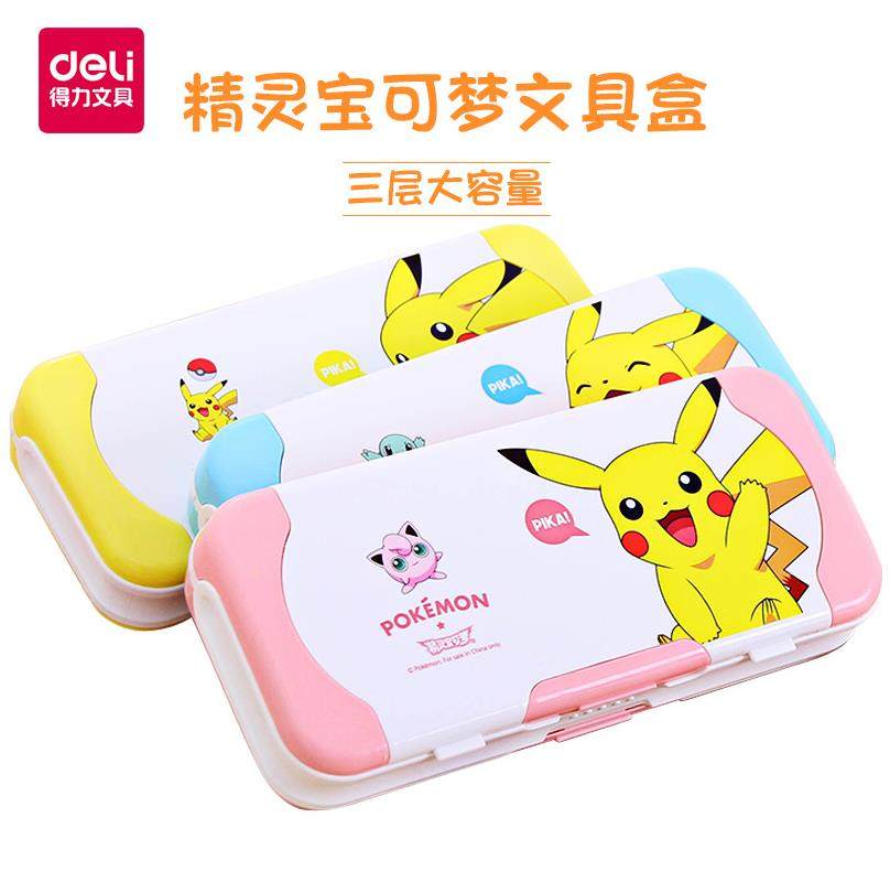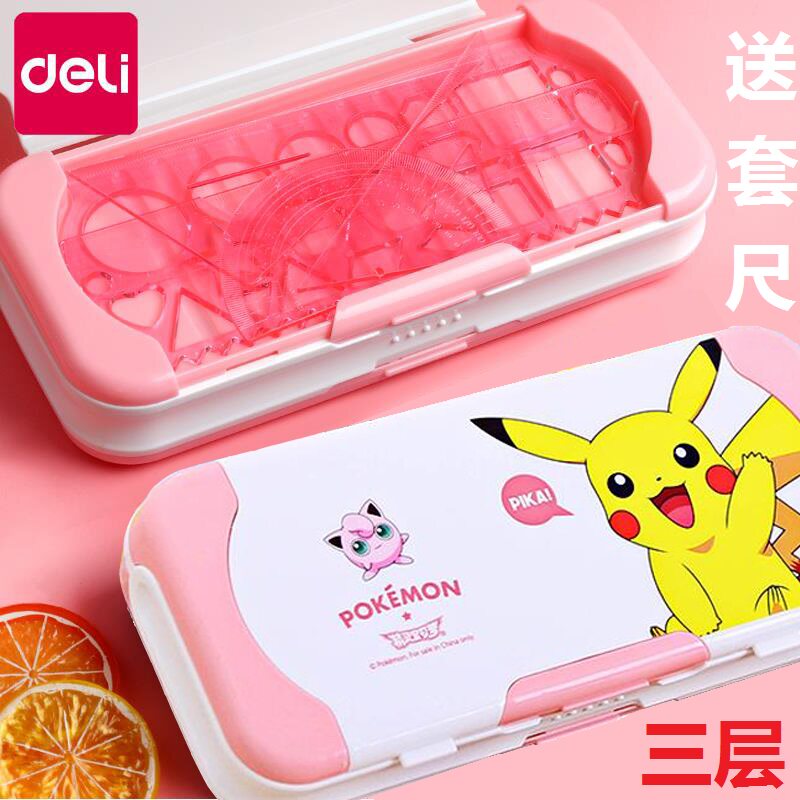 得力文具盒三层大容量笔插笔盒皮卡丘精灵宝可梦收纳韩国版创意幼儿园塑料可爱儿童小学生多功能1-3年级95585