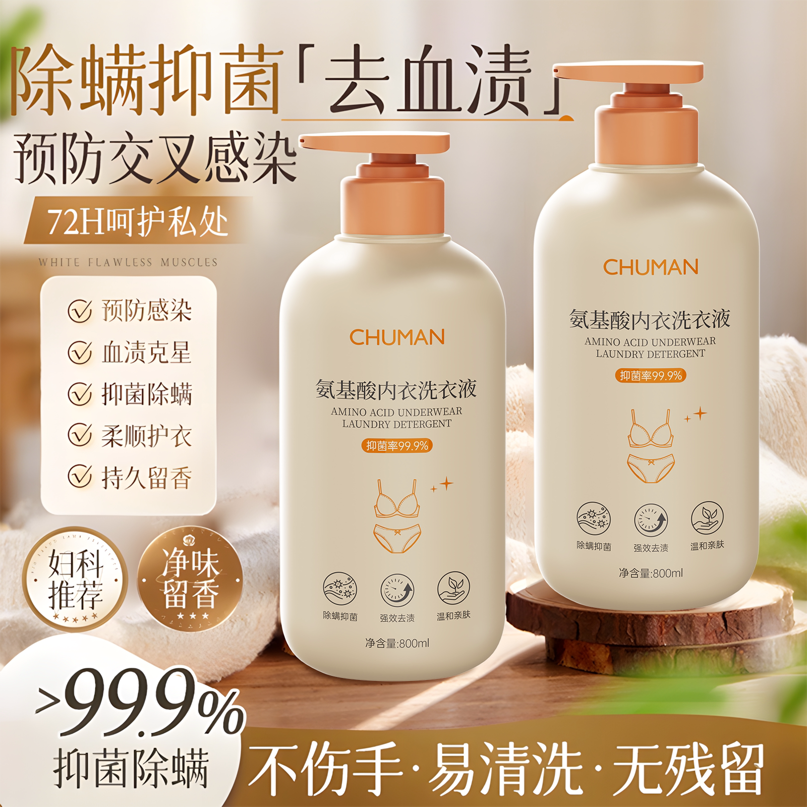 植护内衣洗衣液800g山茶花除菌除螨抑菌去血渍去黄专洗内裤清洗剂