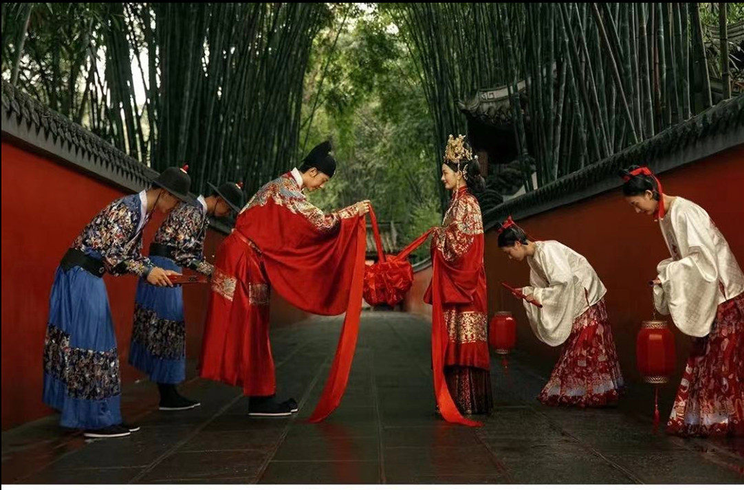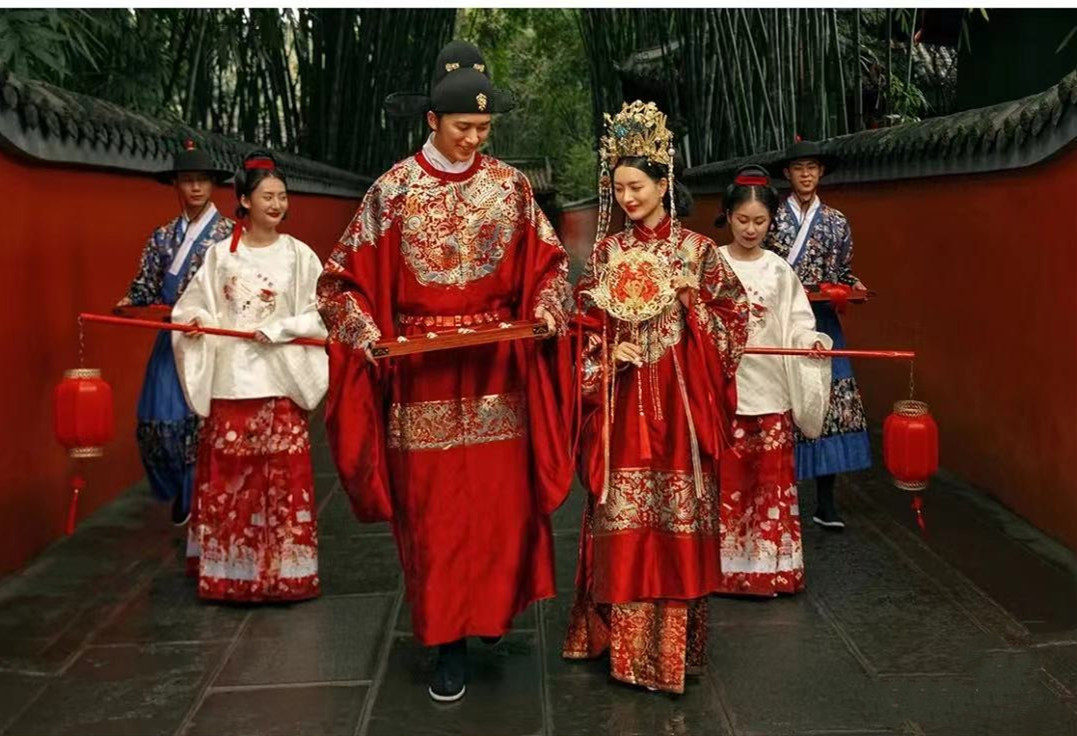新款婚纱照摄影结婚礼红托盘明制汉服古风新娘高端长杆绣球红灯笼