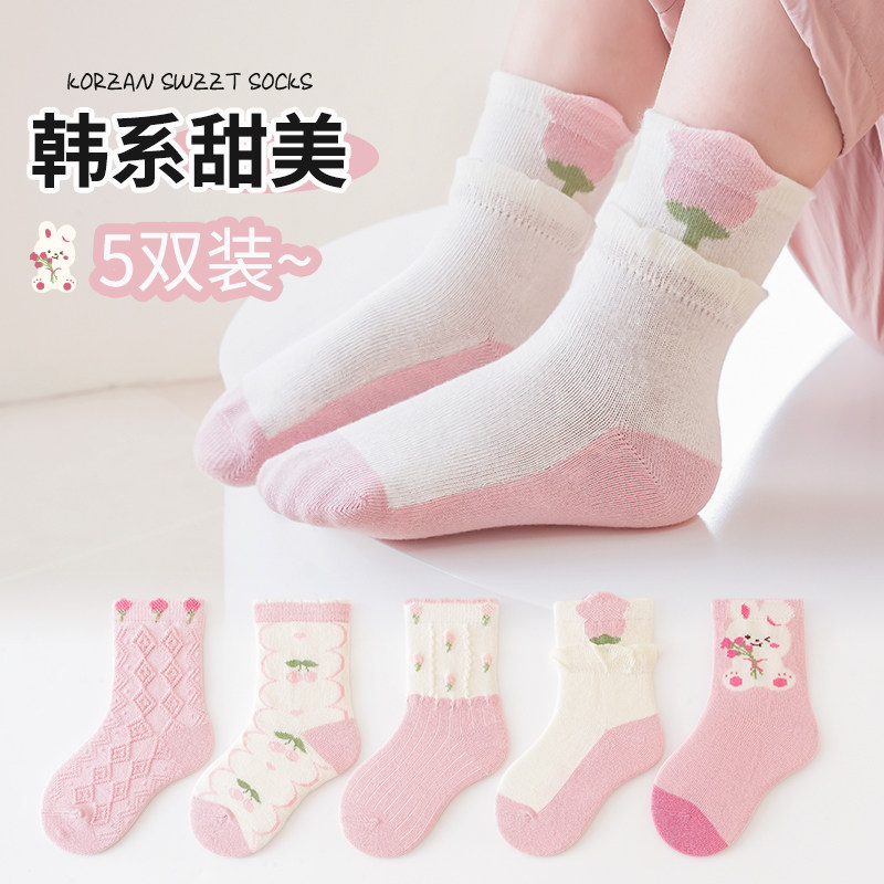 婧麒儿童袜子女童秋冬纯棉中筒袜小女孩公主春秋棉袜宝宝无骨童袜