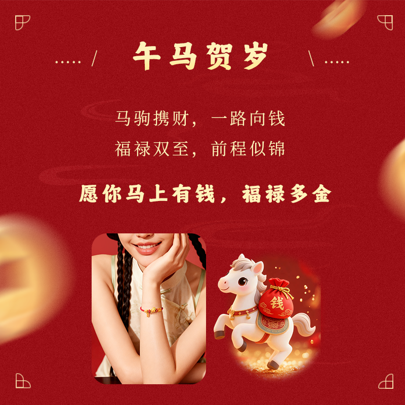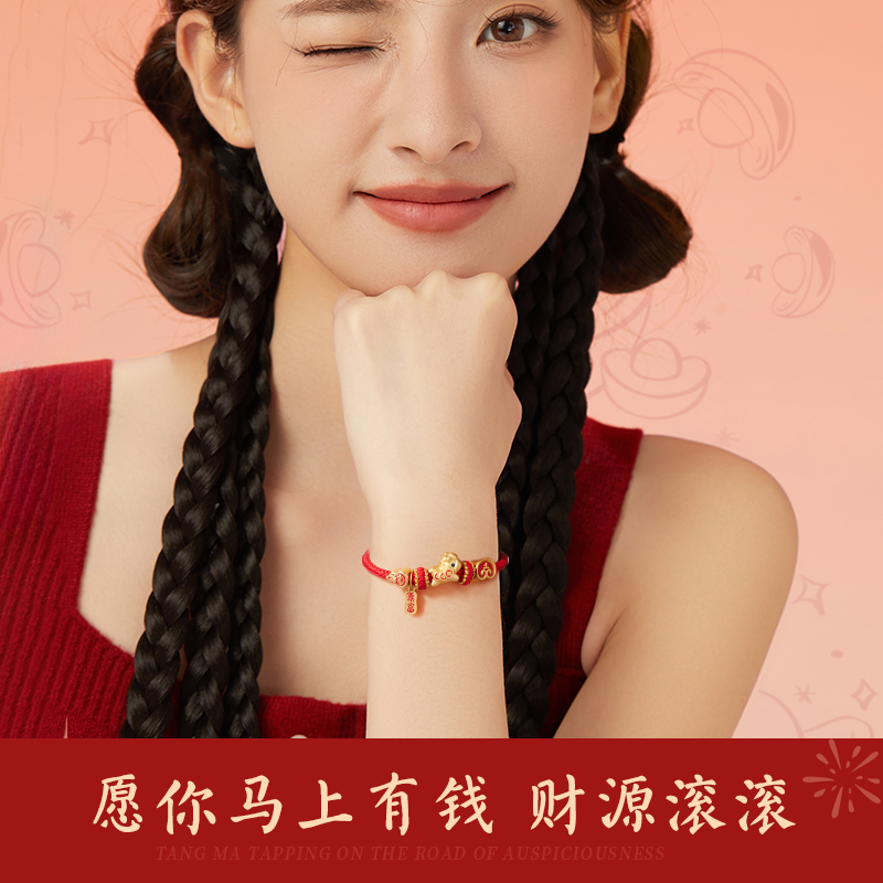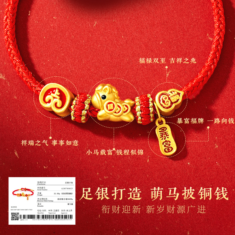 中国黄金央创2026马年本命年红手绳手链吉祥佩戴物本命年礼物足银