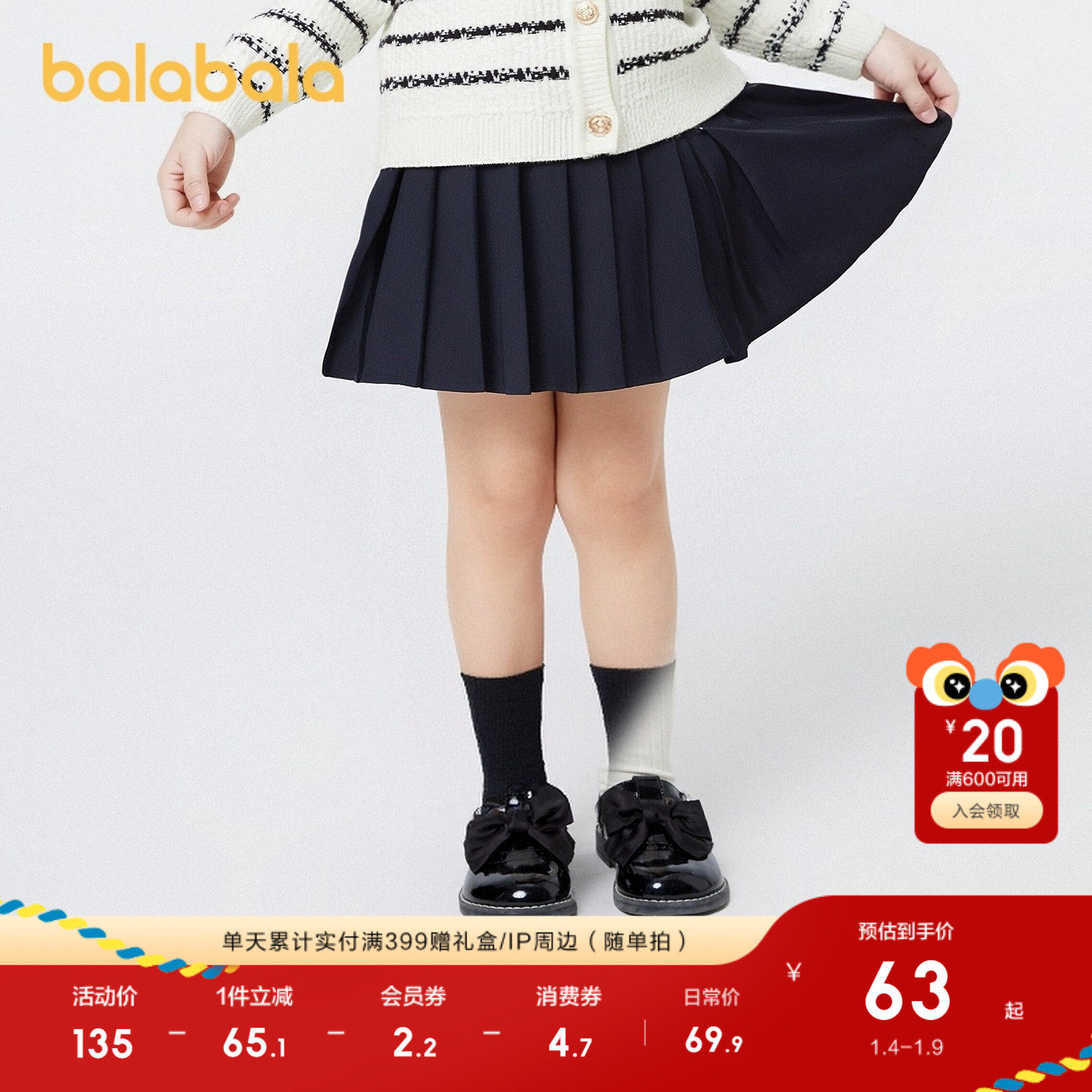 巴拉巴拉童装儿童裙子女童春秋百褶半身裙短裙子洋气