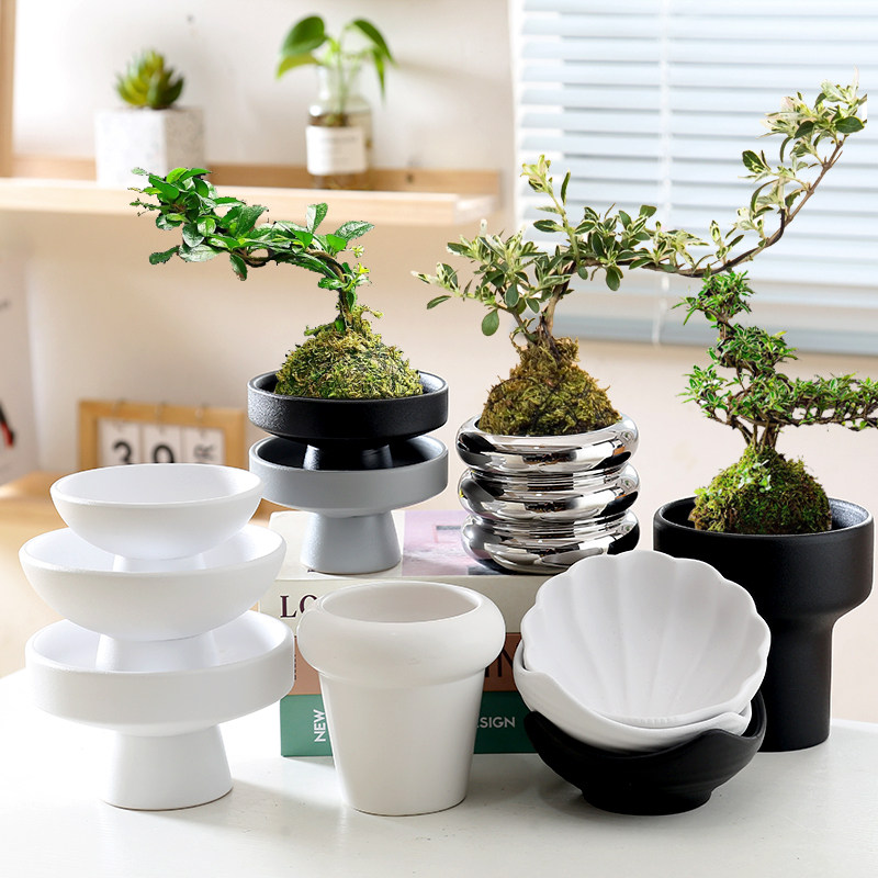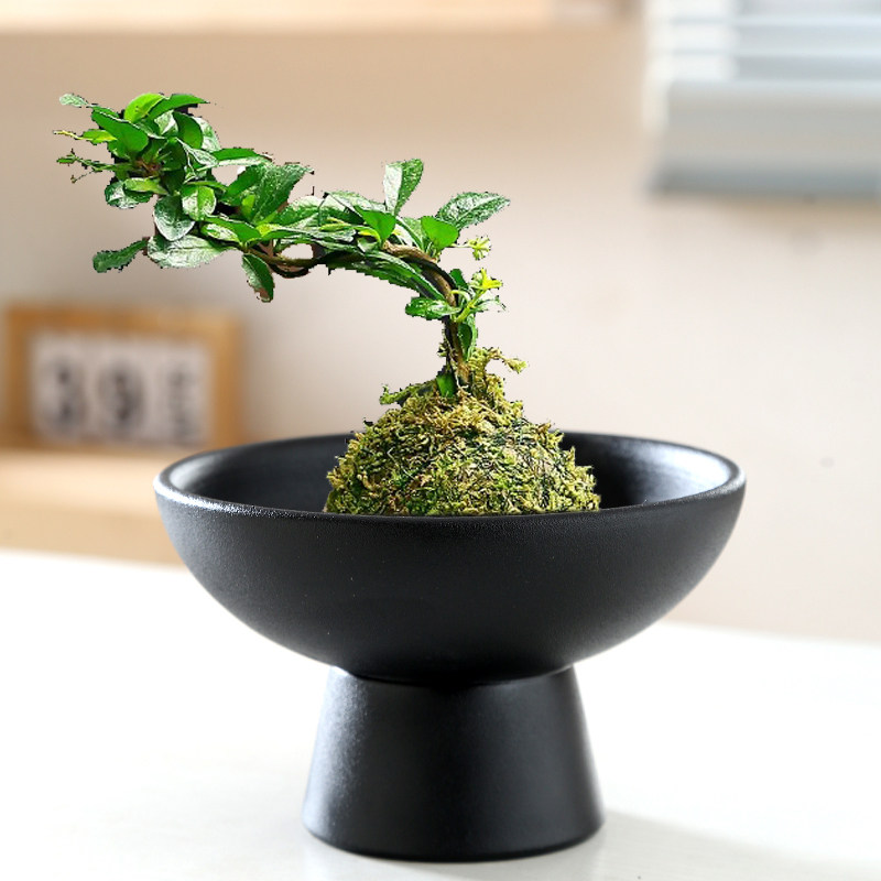 苔藓球花盆陶瓷盆托盘中式桌面摆件水培米竹苔藓球水培器皿盆托
