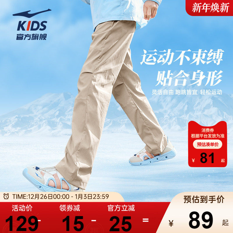 鸿星尔克童装儿童休闲裤子夏季户外薄款伞兵裤直筒男童运动裤长裤