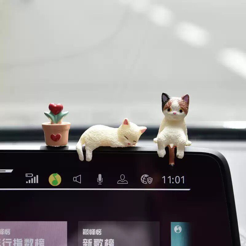 汽车中控屏幕车载趴趴摆件小猫公仔车内饰品后视镜电脑显示器装饰
