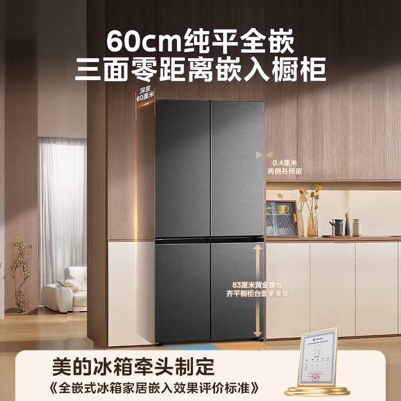 美的熊墩墩系列601L超薄零嵌入式冰箱十字四门双开家用风冷大容量