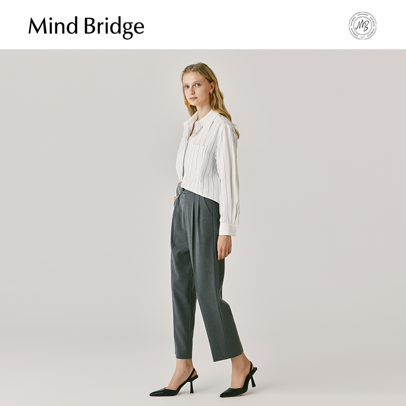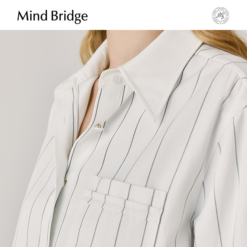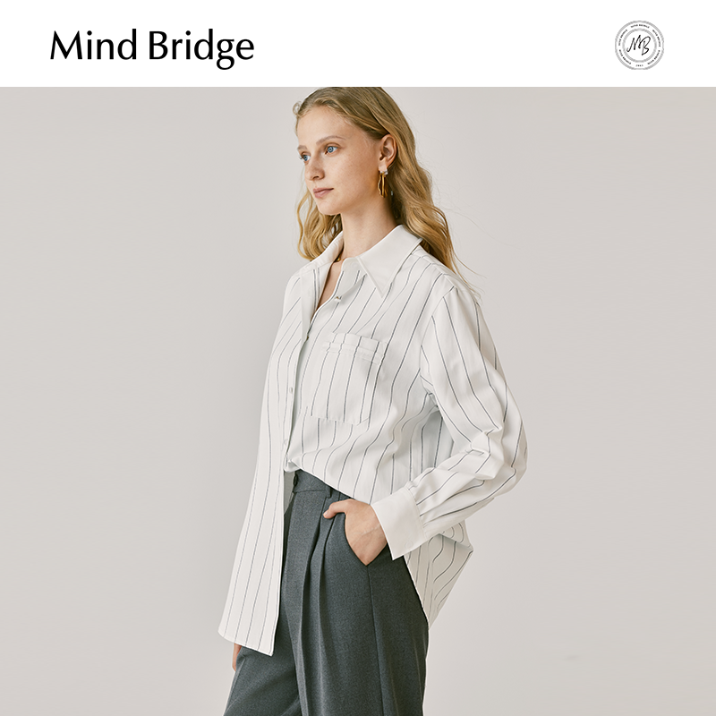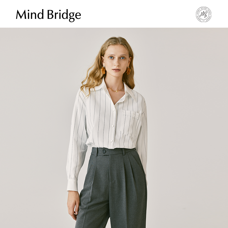 MindBridge百家好2026年春女士黑白条纹衬衫设计感宽松长袖衬衣