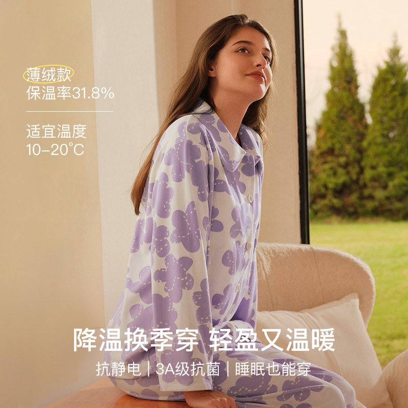 蕉内绒绒520Home女士保暖超级市场半边绒长袖睡裙冬季加绒家居服
