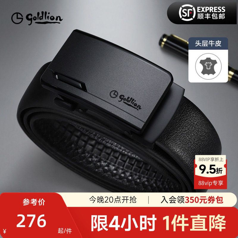 金利来皮具男士新款磨砂自动扣防指纹头层牛皮光面商务腰带