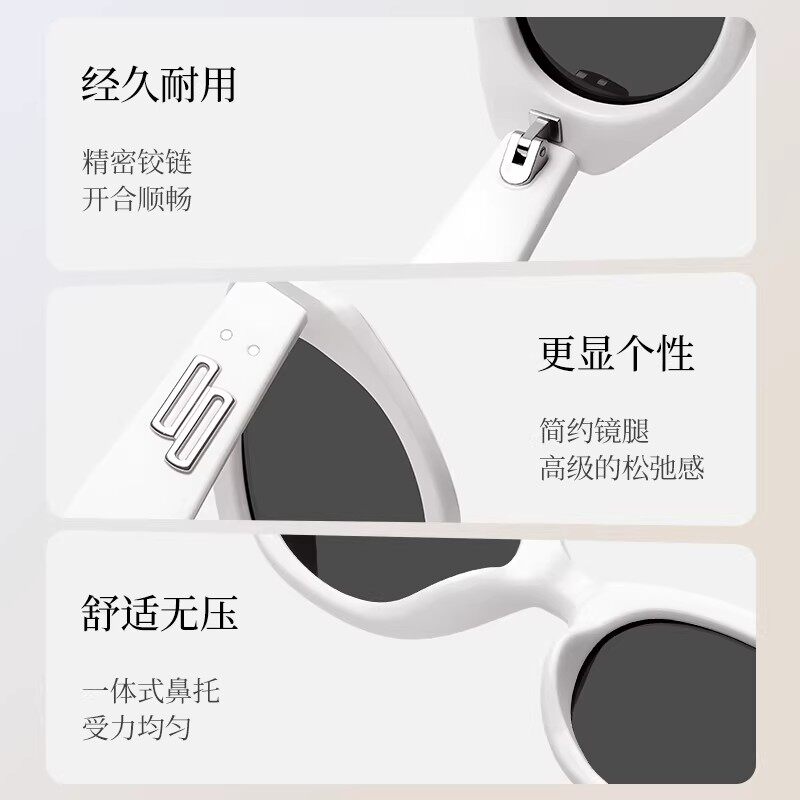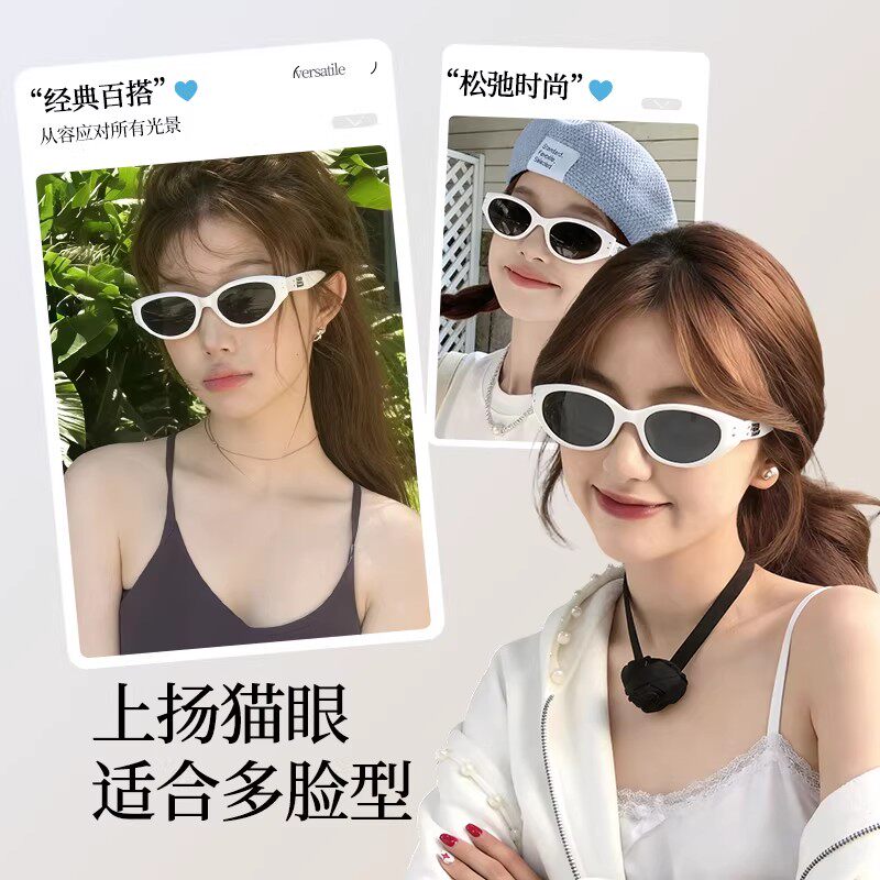 潮流白色猫眼墨镜女款方圆脸高级感窄框太阳眼镜时尚复古方脸遮阳
