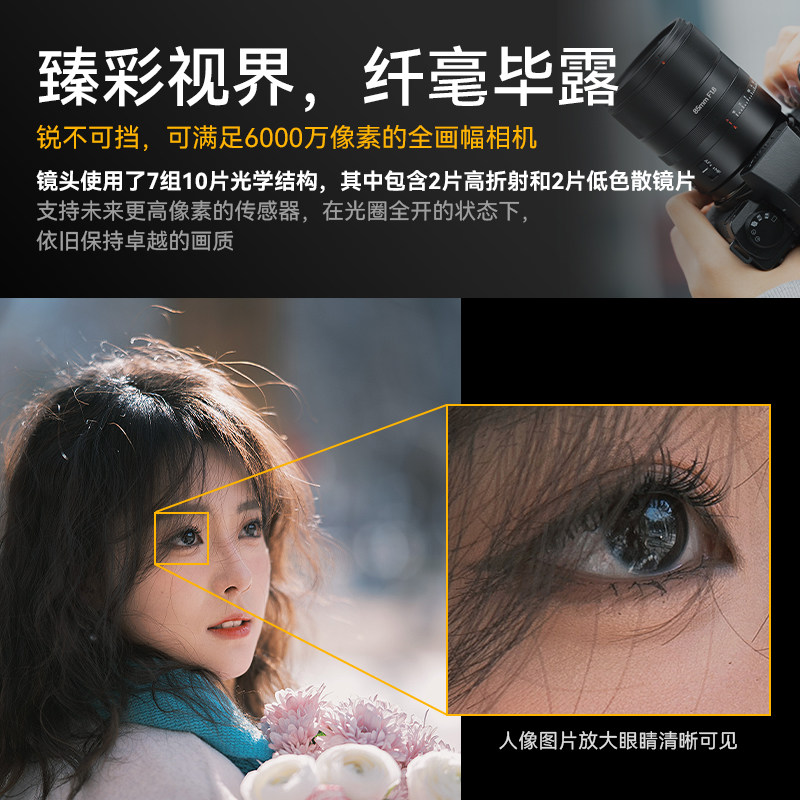 七工匠AF85mmF1.8自动对焦大光圈人像镜头适用A7R5/ZVE10尼康Z7Z8