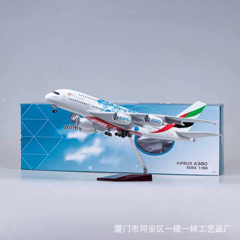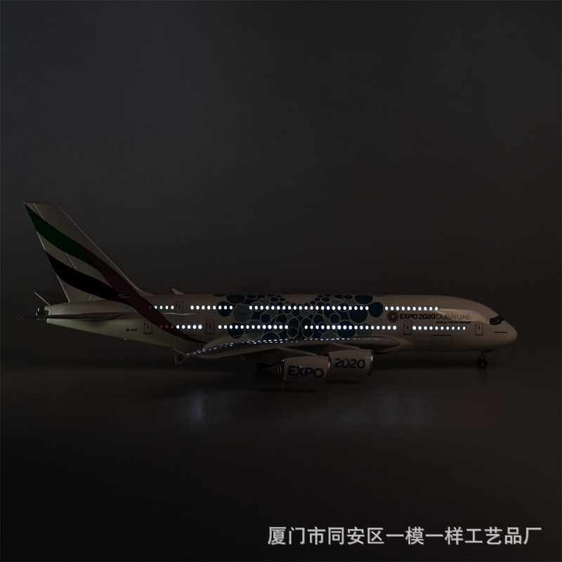 带轮子带灯45cm阿联酋航空2020世博号飞机模型客机仿真空客A380