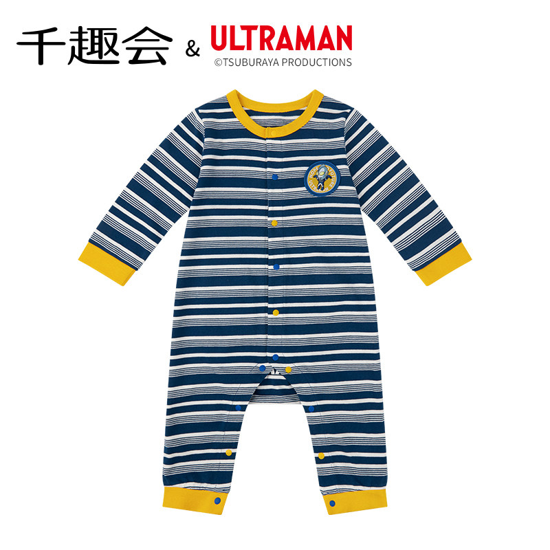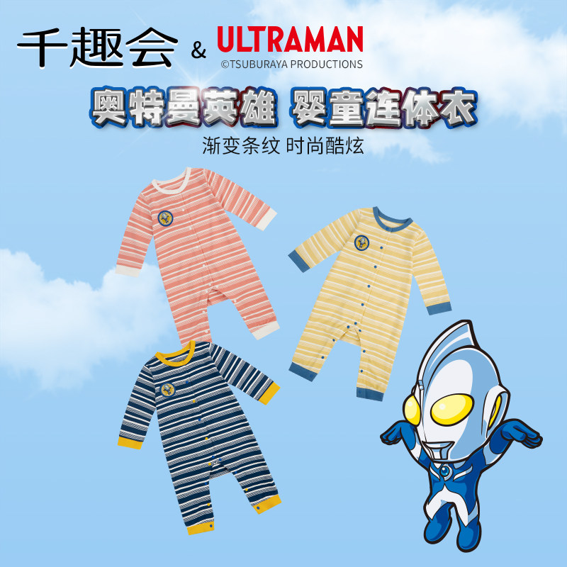 【奥特曼联名】千趣会春秋款婴童爬服条纹棉质宝宝长袖连体衣