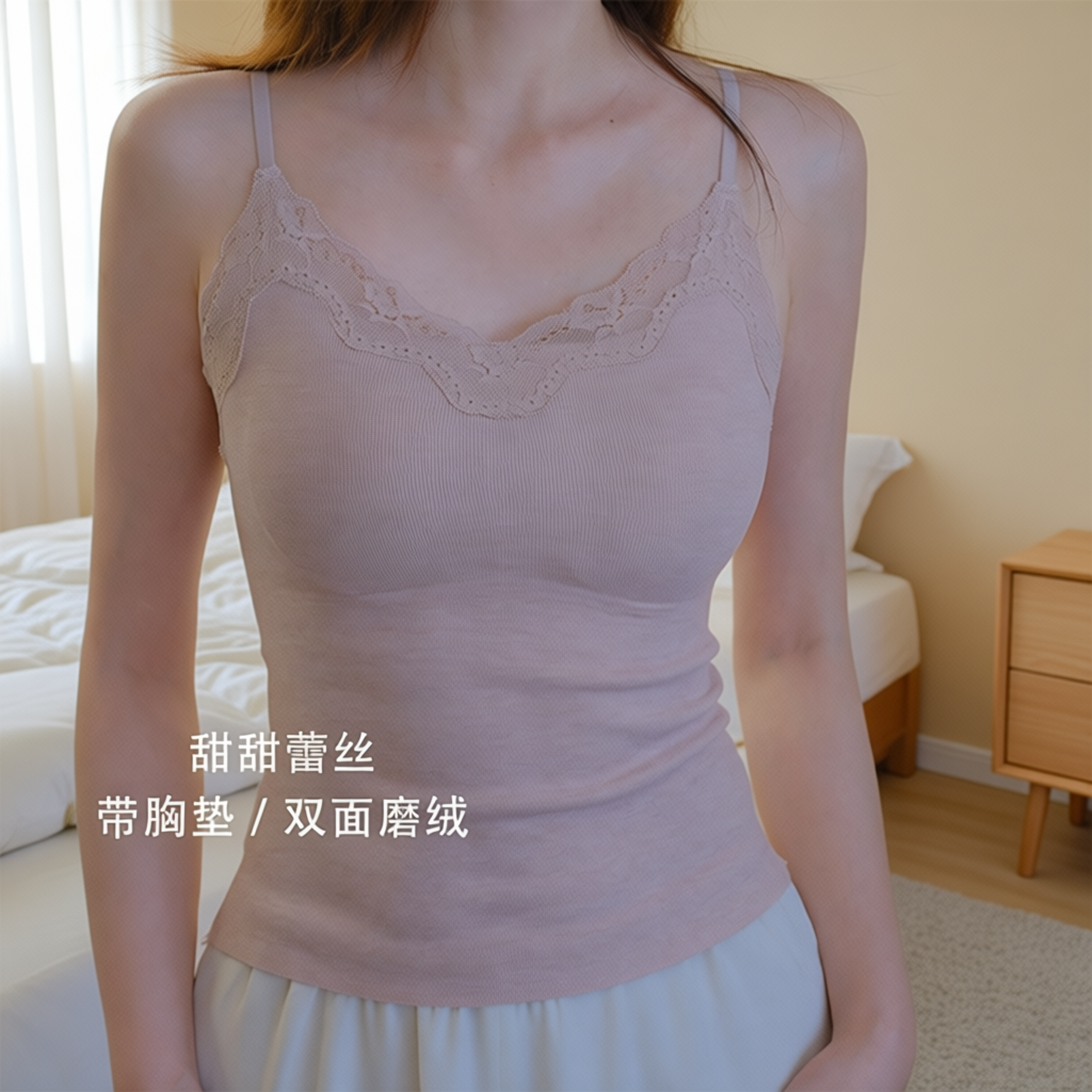 蕾丝双面磨绒吊带背心带胸垫美背上衣保暖打底内搭免穿文胸冬季