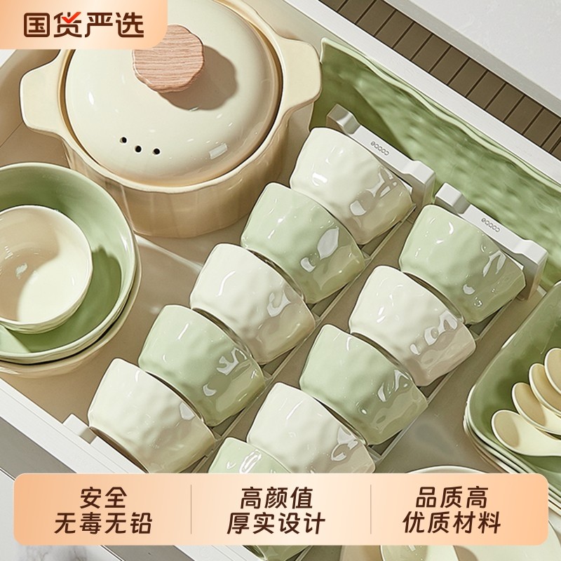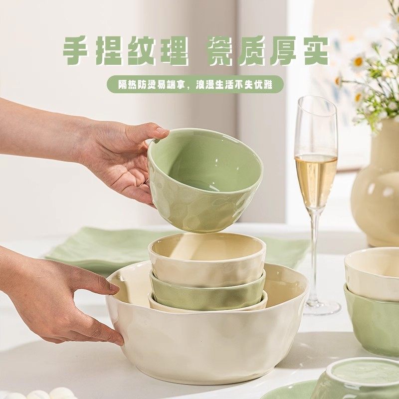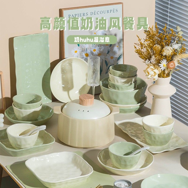 奶油风餐具套装2025新款高颜值碗碟套装家用釉下彩陶瓷碗盘碗具
