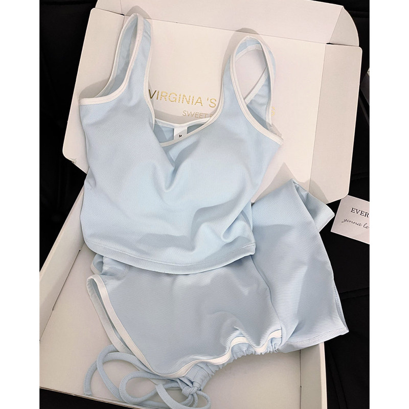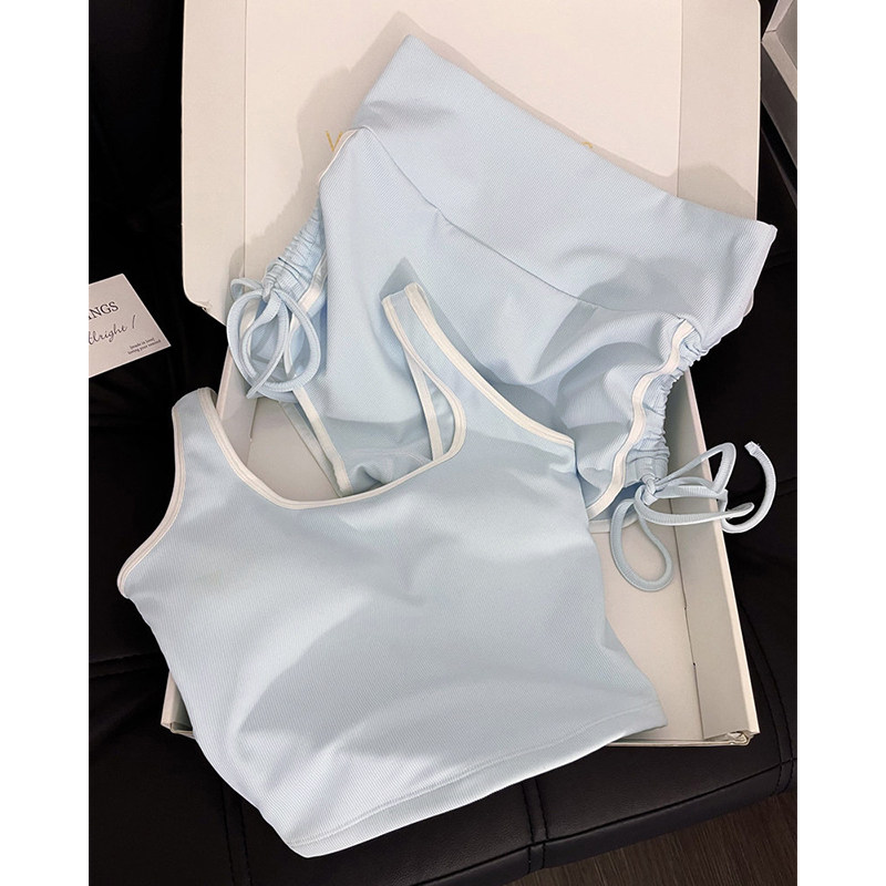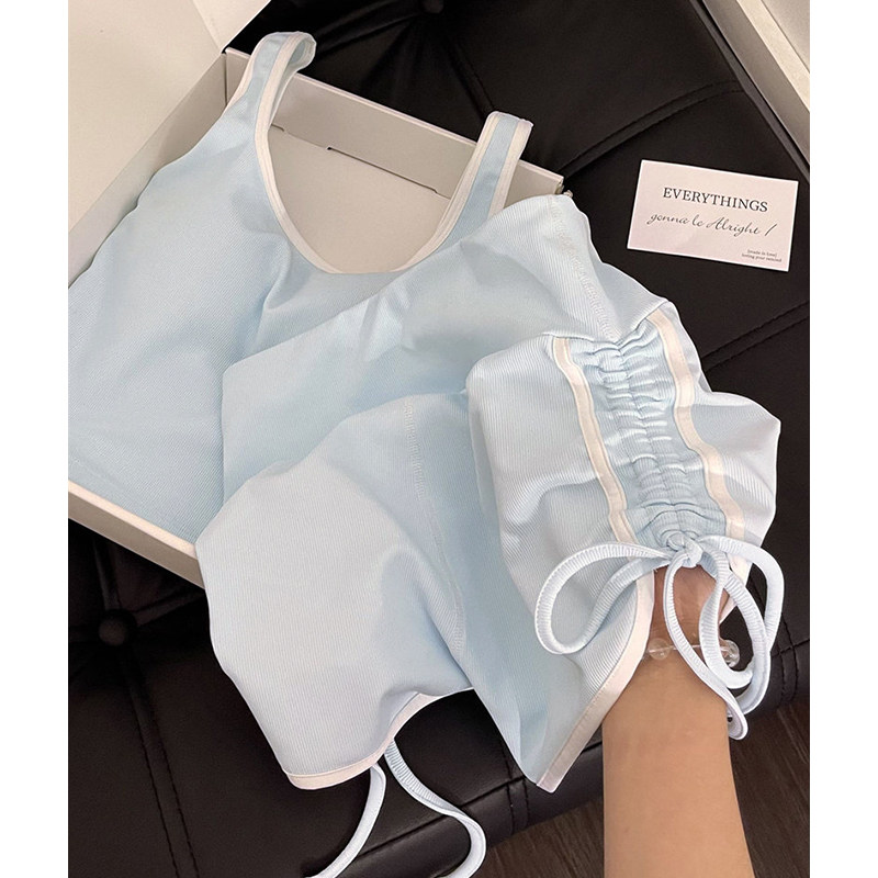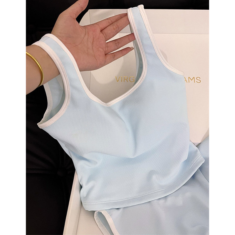 夏季带胸垫运动背心大码健身衣紧身显瘦短裤速干抽绳瑜伽服套装女
