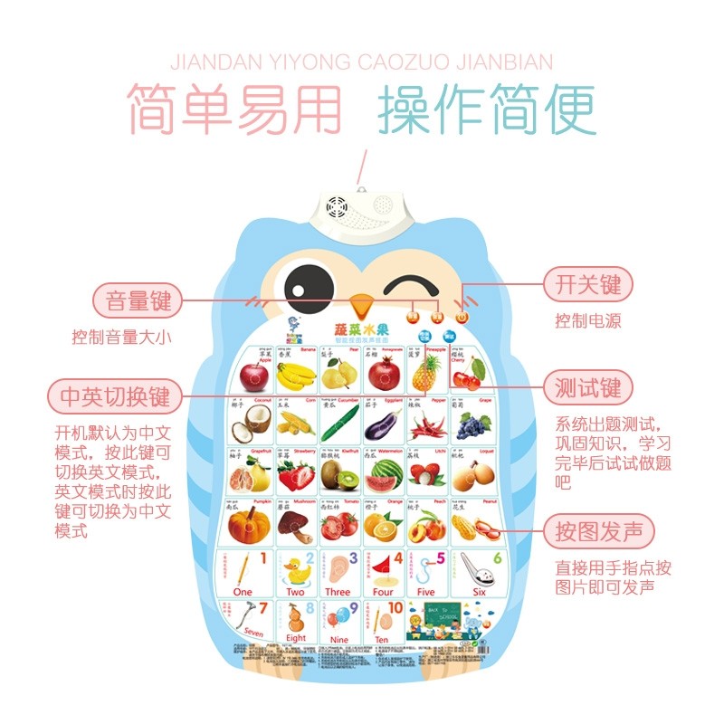 宝宝有声挂图婴儿童发声早教启蒙识字拼音字母表墙贴玩具点读动物